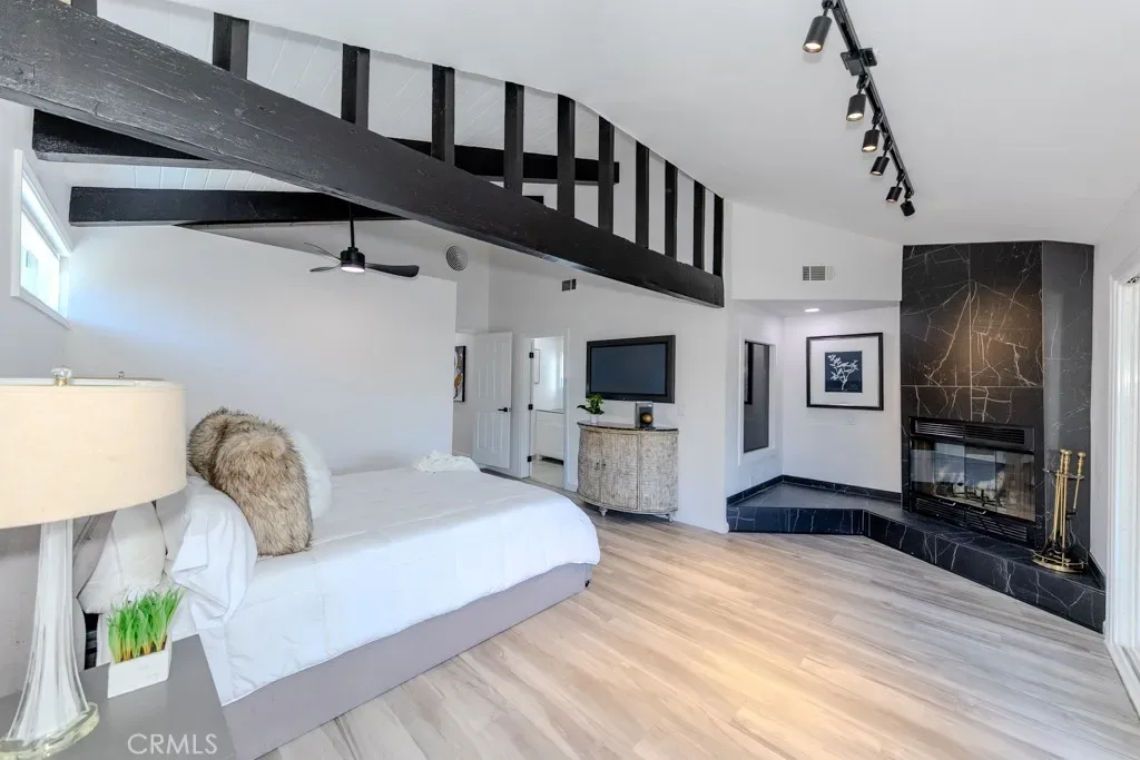 Inside, the home features an open, functional layout with approximately 1,900 square feet of living space, living larger than many competing lakefront homes in this price range. The space is complemented by two fireplaces for added comfort and ambiance, along with an updated kitchen featuring modern appliances including an induction range. The primary suite captures water views and offers direct access to a lake-view deck, creating a seamless indoor-outdoor connection.