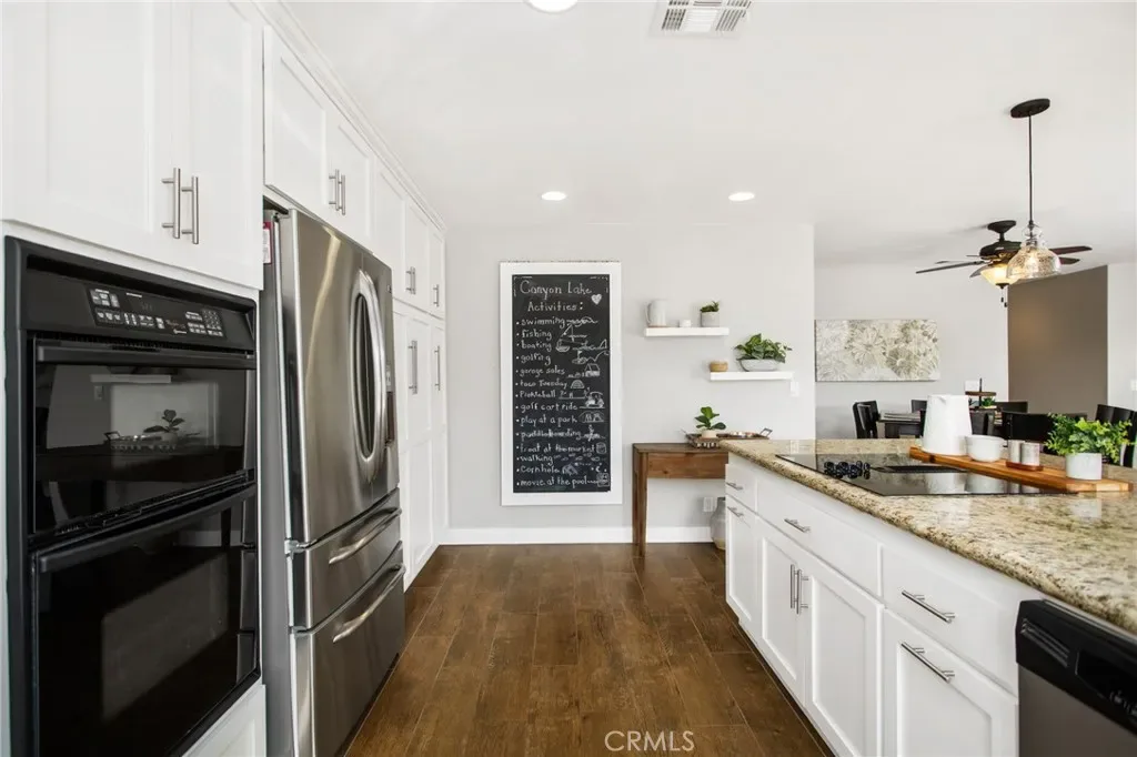 Discover affordable luxury at its finest in this stunning move in ready WATERFRONT POOL HOME (fully remodeled in 2019), with 3 bedrooms, 2 bathrooms and is perfectly situated on a prime section of the East Bay near the channel. Don’t let the square footage fool you, this home has a great layout and feels bigger than what’s on paper. This exquisite property boasts a fully remodeled interior, with dual paned windows and new slider, new wood like tile flooring throughout the entire home, updated kitchen and bathrooms and is extremely well laid out. The living room and kitchen are light and bright with tons of windows, and features beautiful views overlooking the infinity edge pool and spa and is west facing with beautiful sunsets! Outside, the real allure of this home shines, with multiple spaces for entertainment and a private dock with a cover and lift. You can paddle board or swim right from the dock, or cruise out to the main lake in a matter of minutes for wakeboarding and waterskiing. Inside the home has fully updated bathrooms with newer cabinets and countertops, kitchen has also been updated with newer cabinets, countertops and fixtures and boasts a beautiful view from the corner kitchen window (so doing dishes is less of a chore) and a pass through window. The home is finished well with ceiling fans and high end blinds in every room and can be sold fully furnished! The flat driveway provides easy access and ample parking. Come and enjoy the best there is to offer with Canyon Lakes lifestyle! Canyon Lake is a 24 hour guard gated community with a private 525 acre lake, premiere wakeboarding and waterskiing, 18 hole SCGA rated golf course, Lakefront pool and clubhouse, pickleball, waterfront tennis courts, campgrounds, baseball fields, parks & beaches, an amphitheater, docks, over 50 clubs and endless entertainment. Call today for your private showing.