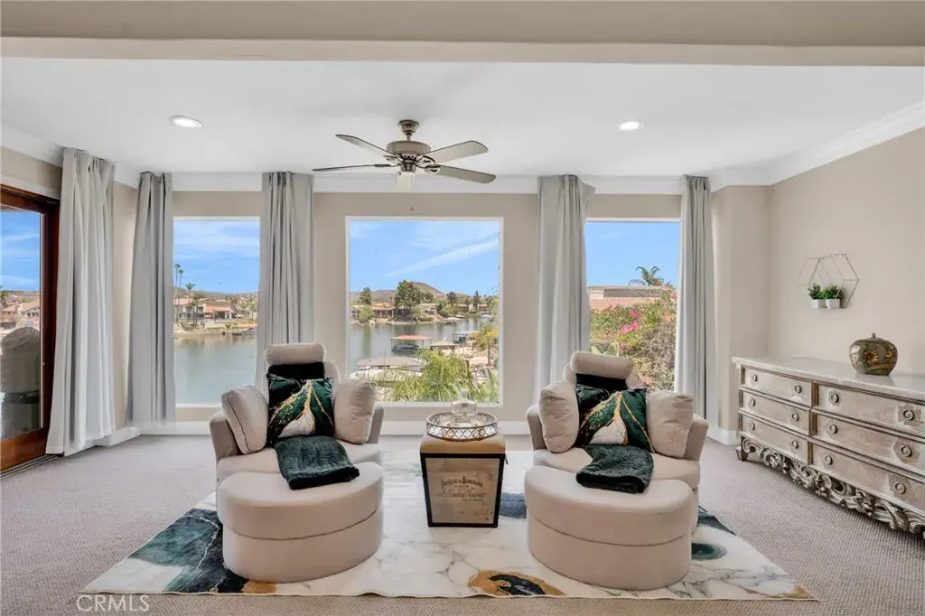 Welcome to 30420 Longhorn Drive, a stunning east-facing waterfront masterpiece located in the prestigious guard-gated community of Canyon Lake, CA. Perfectly positioned on the serene waters of Catfish Cove, this residence offers refined lakefront living with breathtaking panoramic views, exceptional design, and world-class amenities. Spanning an impressive 3,811 sq ft on a 6,098 sq ft lot, this home features a grand open floor plan adorned with soaring ceilings, travertine flooring, and designer finishes. The gourmet kitchen is a chef’s dream, complete with a large center island, Viking appliances, wine cooler, and spacious walk-in pantry—a perfect balance of function and elegance. The luxurious master suite is a true private retreat, offering sweeping lake views, a cozy sitting area, private patio, in-suite fireplace, dual walk-in closets, and a spa-like ensuite with jacuzzi tub and oversized glass shower. Outdoor Living at Its Finest-The resort-style backyard is an entertainer’s paradise, featuring an infinity-edge pool and spa with cascading waterfalls, multiple seating areas, and a private patio with built-in entertainment center. Enjoy a sandy beach area, large palapa, fire pit, and a covered u-dock with hydro lift—ideal for boating, paddleboarding, or simply soaking in the lakefront tranquility. From the moment the sun rises over the water to the peaceful glow of evening, this property offers front-row views of majestic water and mountain vistas, fostering a daily sense of serenity and elevation. Designed for both grand entertaining and intimate moments, it seamlessly blends luxury and comfort. In the celebrated Canyon Lake community—renowned for its privacy, safety, recreational amenities, and natural beauty—this home is more than a residence; it’s a lifestyle. Whether hosting unforgettable gatherings or enjoying quiet reflection by the water, 30420 Longhorn Drive is truly one-of-a-kind.