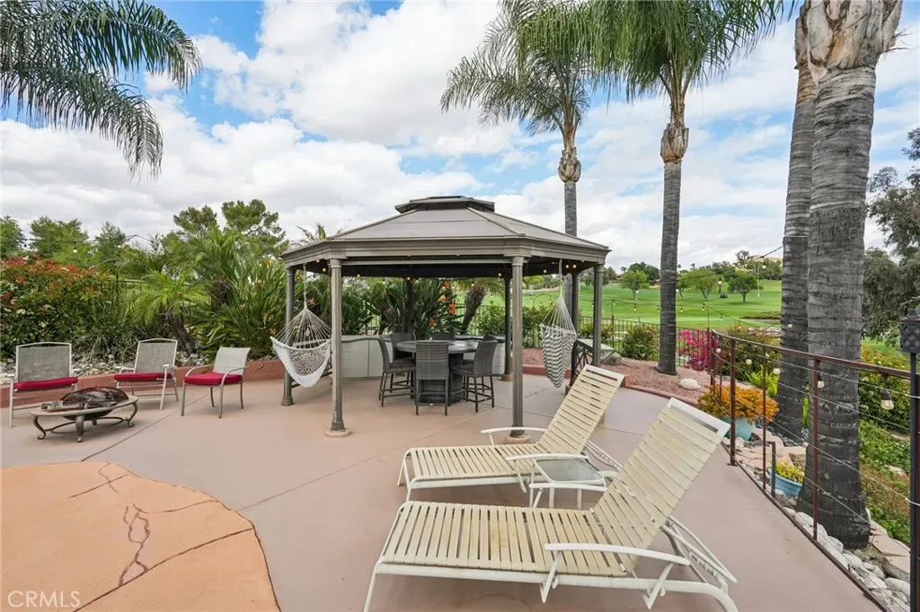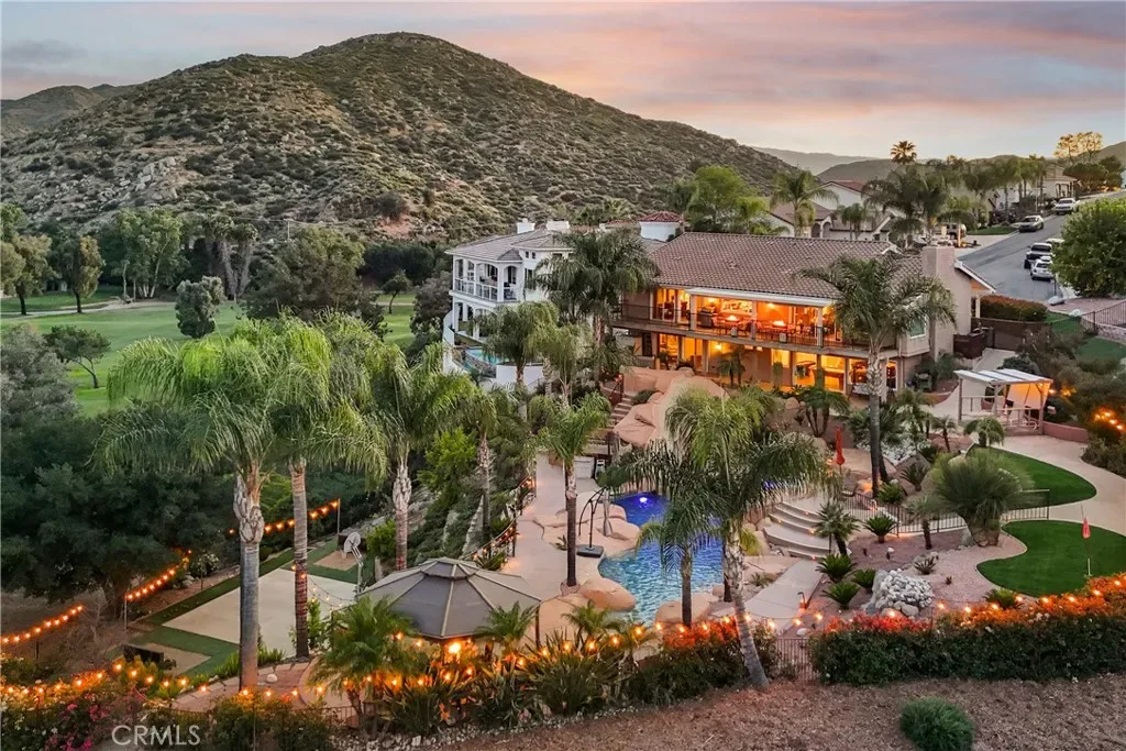 Welcome to a rare LUXURY OFFERING in the highly sought-after gated community of Canyon Lake. Situated at the end of a quiet cul-de-sac on an expansive Half Acre lot, this exquisite Home boasts breathtaking golf course views, backing directly to the 2ND GREEN AND 3RD FAIRWAY. This meticulously maintained 4-bedroom, 3-bathroom home is thoughtfully designed to live like a Single Story, with the Primary Suite and an additional Bedroom and Bathroom located on the Main Level. The Upper level showcases expansive windows that perfectly frame the stunning views, neutral 18″ tile flooring with Carpet in the Bedrooms and a cozy gas fireplace anchoring the Main Livingroom. The Kitchen is HUGE and it has been remodeled with classic, dark wood cabinets, a deep Farmhouse double basin sink, Quartz Counters, Stainless Appliances, and a Breakfast Bar with seating for 2-3. The entire House has been freshly painted in “Spun Wool” by Behr and it has upgraded cordless blinds throughout. The Lower Level offers exceptional flexibility with two additional Bedrooms, a full Bathroom, a secondary living room that has a Wet Bar area and a wood burning fireplace, plus a dedicated laundry room—IDEAL FOR GUEST OR MULTI GEN LIVING. Step outside to your private resort-style oasis. The backyard is designed for both Relaxation and Entertainment, featuring a Saltwater Rock Pool with beach entry, Waterslide, Spa, and solar heating. There is a variable speed pump and the Pool Heater/Filter are only 3 years old! There is Turf in Front and Back, lush healthy landscaping on an automatic drip system for easy maintenance, and a small putting green along with a Basketball Court, Bocce Ball Area, and Horseshoe Pit, making this THE HOUSE TO ENTERTAIN AT! Additional highlights include OWNED SOLAR, added Propane, A new Roof in 2014, and a new upstairs HVAC system in 2018. There is an Attached 2 Car Garage and a Driveway with parking for 2 cars. This exceptional property combines LUXURY, PRIVACY, AND AN UNMATCHED LIFESTYLE. Come be a part of the Canyon Lake Community! You’re going to love it here!