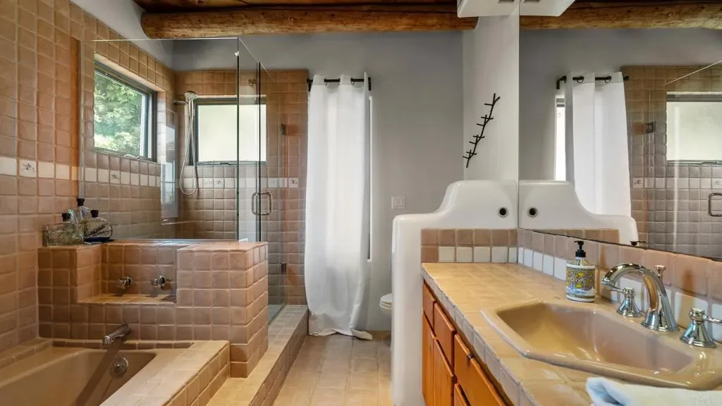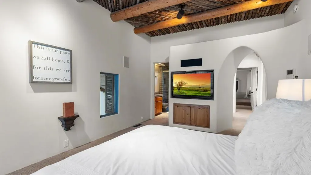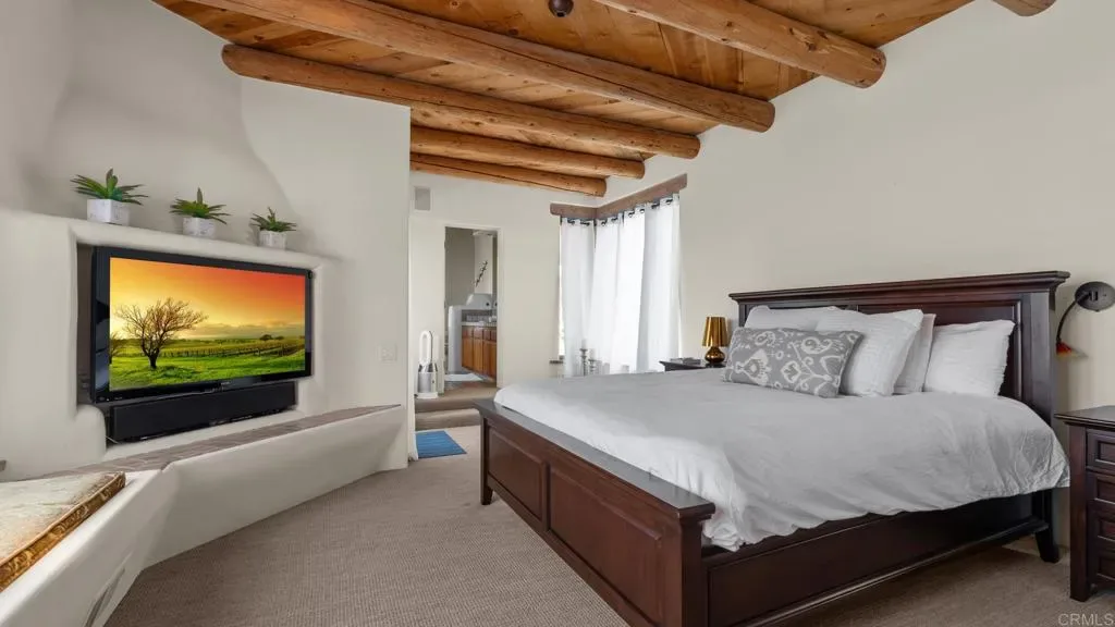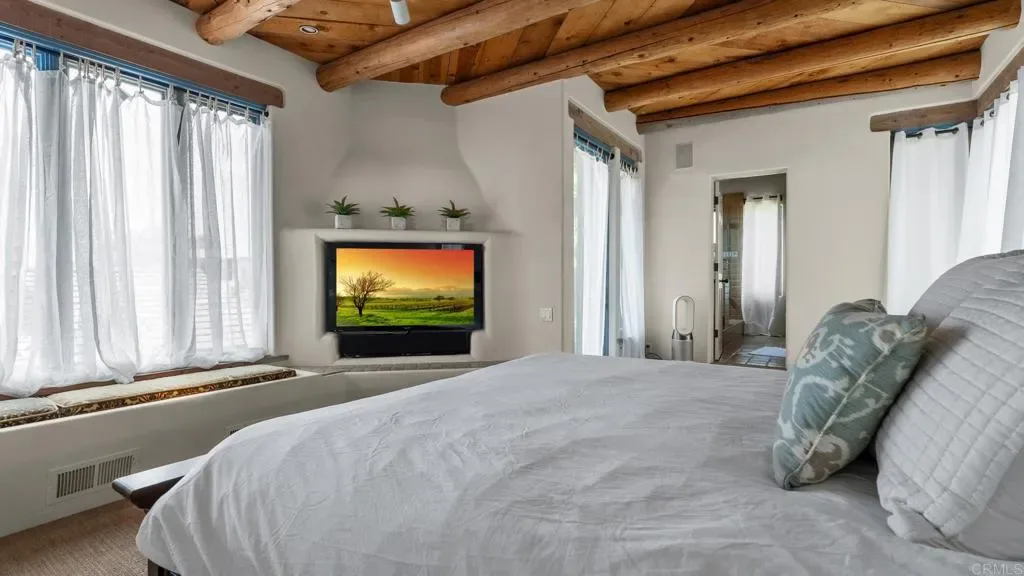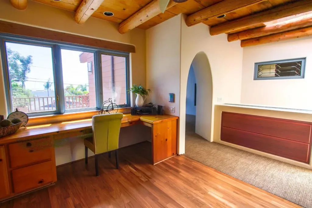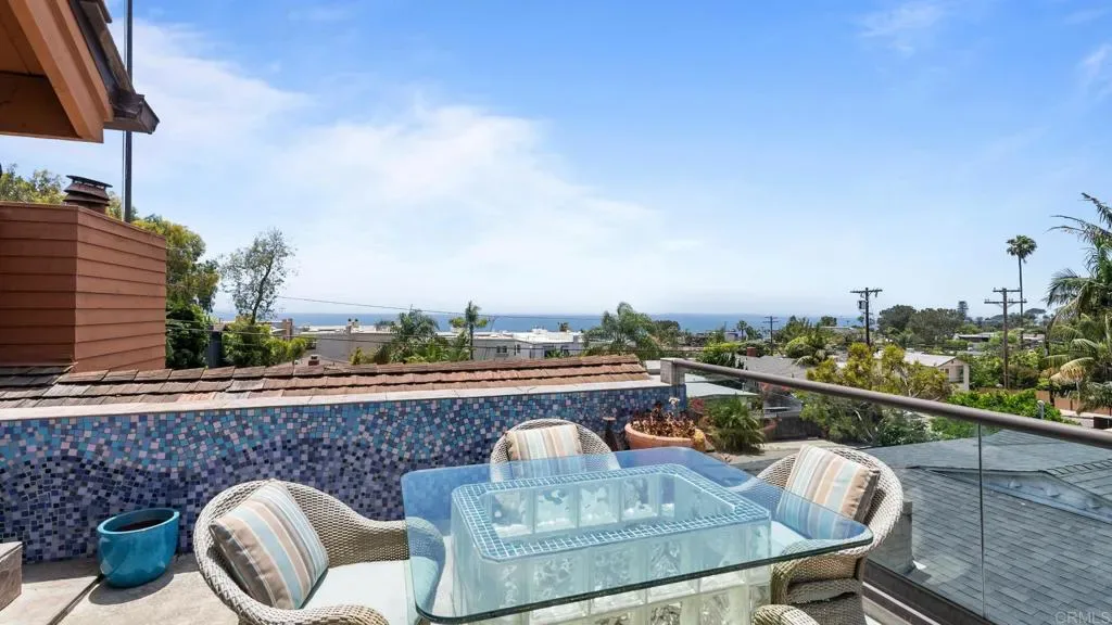Furnished monthly rental available at the prime location in Cardiff by the beach in San Diego! April-June $14,000 per month , July-August $18,000 per month all utilities and gardener included in the rent. Minimum 30 dys. West of I-5 with ocean views! Pass through the dramatic mosaic entrance into a private courtyard, continue through a wall of French Doors to this masterfully designed custom home. The formal dining room has a kiva fireplace and buter’s pantry. Take the nautical spiral staircase to the top deck with a kitchen and entertainment area and enjoy panoramic view of the ocean. 3 Bedroom , 4 bath and 2 offices, rental to maximum 7 guests total. Provides utensils , linens,towels, dishes, cookware, glassware. The master bedroom exudes natura light streaming from both sides of the room and overooks the privatedoors leading to the wrap-around deck facing the West into the Pacific Ocean.