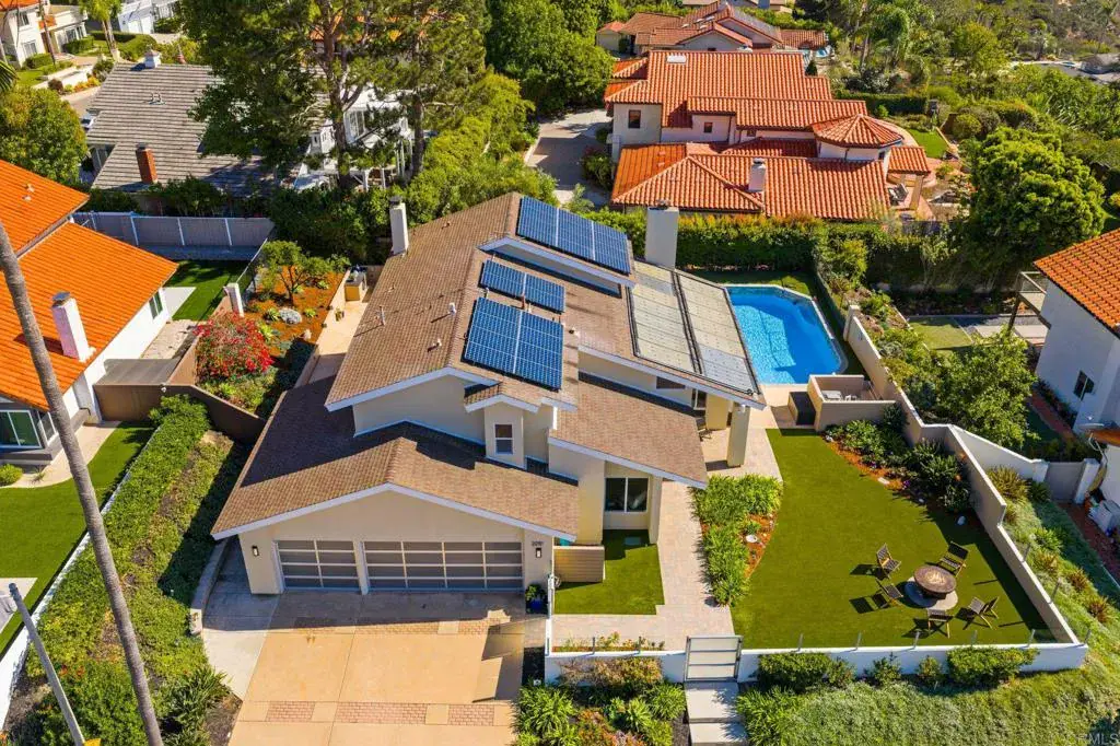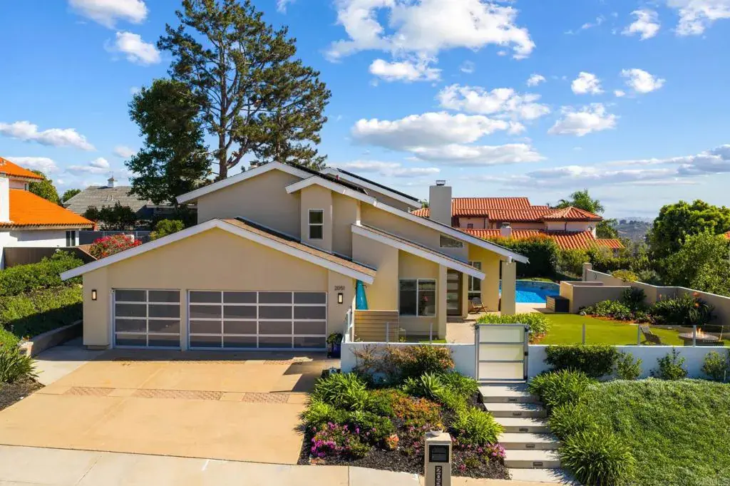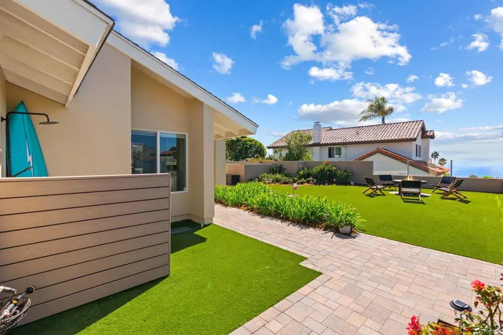 Welcome to 2051 Wales Drive! Your Dream Home Awaits in Cardiff-By-The-Sea! This stunning 4-bedroom, 3-bath residence is perfectly situated on one of area’s most coveted streets. And has been impeccably maintained with premium improvements throughout. Stellar Ocean and Sunset Views await both from within, and from the impeccably manicured outdoor space. Dive into luxury with a resort-style pool and spa complemented by ocean views. And unwind by the firepit while enjoying vibrant sunsets over Cardiff Beaches. Open, cheery and bright, the first floor features a premium kitchen with stainless appliances and high quality cabinetry with tons of storage. Upstairs features a Primary Suite with vaulted ceilings, a walk-in shower with custom tilework, and a large deck. 2 additional bedrooms feature custom closets with ample storage. The upstairs laundry area provides convenience. Premium upgrades throughout include custom closet storage, premium window coverings, dual-zone heating and cooling. Owned solar keeps utilities cost at a minimum The 3-car garage features built-in storage cabinetry as well as epoxy flooring. This home isn’t just about location, it’s about a lifestyle that feels like a permanent vacation.