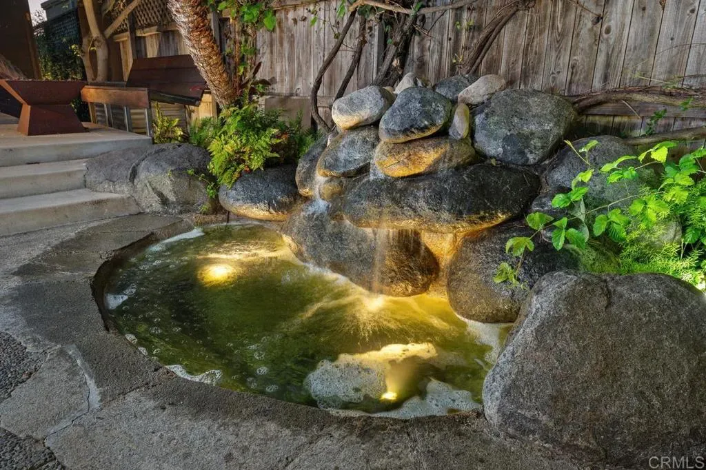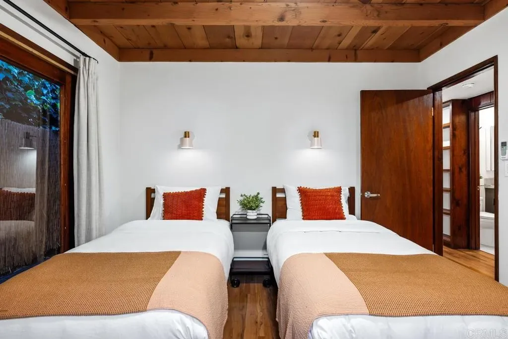 Beach Chic meets Cardiff Cool! Perched atop one of the highest lots west of Interstate 5 in coveted Cardiff-by-the-Sea, this exceptional coastal property presents a rare opportunity to enjoy a serene beach retreat, secure a high-performing income property, or explore future development potential. Situated on an elevated 5,000 sq ft lot with horizon sunset and peek ocean views, the property offers the possibility to build two homes with potential ocean views on two underlying legal lots. Currently configured as a turnkey, single-level coastal retreat, the home was completely renovated in 2023 by renowned design/build firm Buechler Builders. The beautifully updated main residence features 4 bedrooms and 3.5 bathrooms across approximately 1,408 sq ft, complemented by an attached private 259 sq ft ADU — ideal for guests, rental income, or multi-generational living. Each residence enjoys its own private entrance, garage, legal address, and separate gas and electric meters. Recent rental history totals approximately $12,900/month ($9,000 main house; $3,900 ADU). Inside, white oak flooring, soaring open-beam cedar ceilings, and abundant natural light create a warm yet refined coastal aesthetic. The open-concept layout flows seamlessly from the quartzite chef’s kitchen with oak cabinetry and stainless-steel appliances into the living and dining spaces. Three of the four bedrooms open directly to private outdoor patios through French or sliding doors, while two ensuite bedrooms provide added comfort and flexibility. Professionally landscaped grounds offer three private patios, a tranquil water feature, two firepits, and lush greenery enhanced by automatic ambient lighting — perfect for entertaining or relaxing year-round. The newly built 2023 ADU includes a full kitchen, full bathroom, stacked washer and dryer, stainless appliances, and a spacious private deck with firepit, creating a peaceful standalone retreat or premium rental opportunity. Future development possibilities further enhance the value, with two underlying legal lots allowing potential construction of a legal twin-home configuration. Conceptual plans envision approximately 2,150 sq ft attached single-family residences, each with its own ADU and two-car garage (buyer to verify). Additional highlights include a 2-car garage for the main home, 1-car garage for the ADU, cedar shake shingle exterior showcasing true coastal character, and a quiet, private top-of-the-hill location within the highly desirable Cardiff and San Dieguito school districts. A rare blend of lifestyle, income potential, and future upside in one of North County’s most sought-after coastal communities.