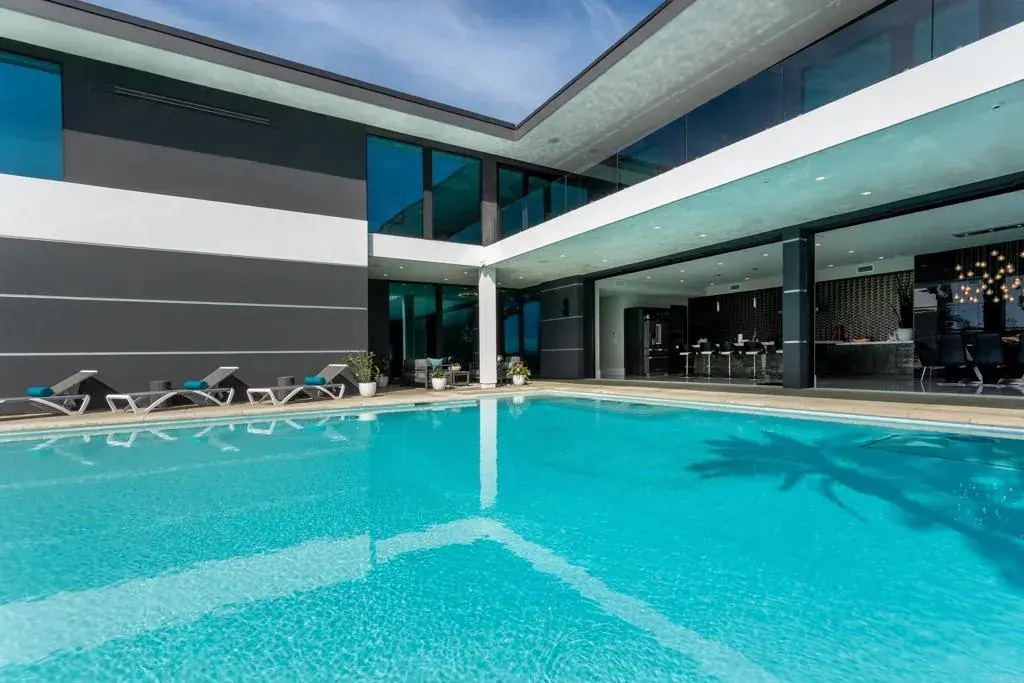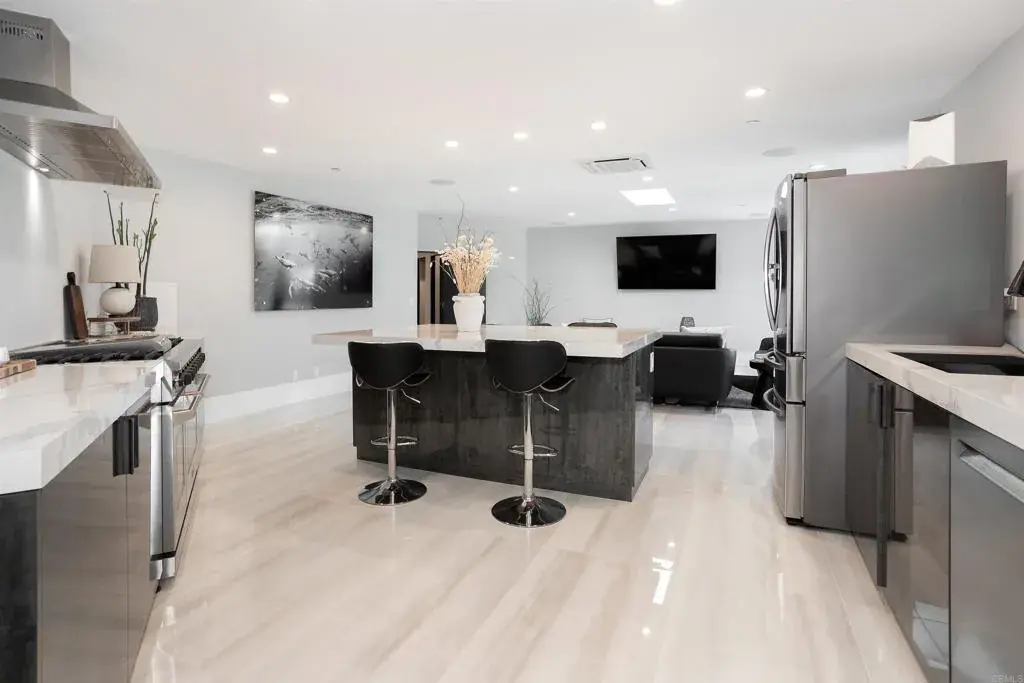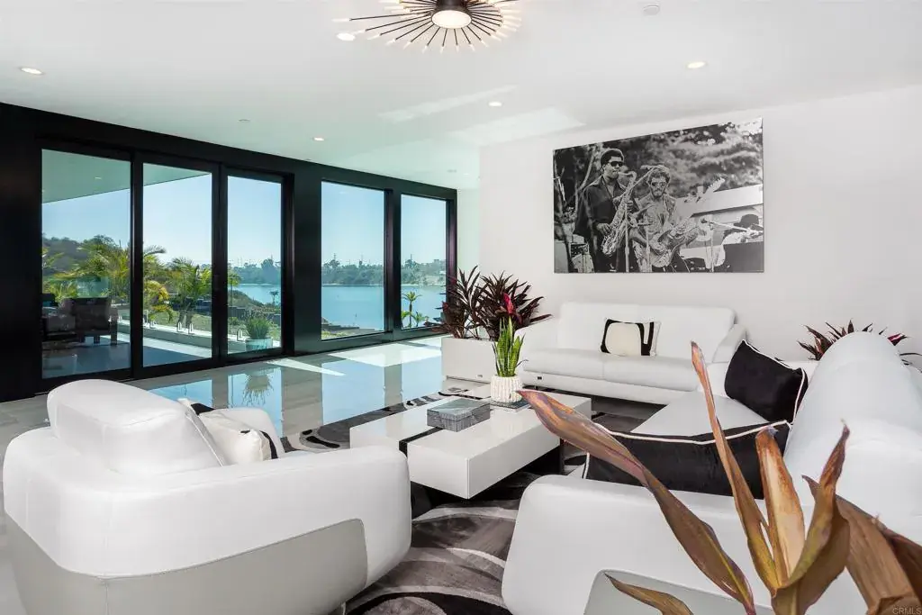 Experience the pinnacle of luxury living with this modern, custom-built waterfront estate nestled on the tranquil lagoon in Carlsbad. Boasting unparalleled views of the lagoon and ocean, this architectural masterpiece is designed to impress at every turn. Floor-to-ceiling windows bathe the interiors in natural light, highlighting soaring ceilings and sleek contemporary lines that define the home’s sophisticated aesthetic. Step inside and be captivated by the state-of-the-art kitchen, equipped with premium stainless-steel appliances, a large center island, and seamless transitions into the spacious dining area and family room. Expansive sliding glass pocket doors open to your private backyard retreat, where a sparkling pool with in-water bar seating takes center stage. To further an entertainer’s dream, this outdoor paradise also features a fully equipped BBQ, a firepit, a poolside shower, private outdoor bathroom, and a professional chef’s garden all set against breathtaking lagoon and ocean vistas. The second level unveils a versatile grand loft and a luxurious primary suite that redefines indulgence. Complete with two oversized walk-in closets and a spa-like en-suite bathroom, the primary suite offers both comfort and style. Four additional bedrooms provide ample space for family or guests, while expansive decks on this level offer some of the most unparalleled panoramic views imaginable. Adding to the allure is an attached guest house, thoughtfully designed with its own kitchen, living room, bedroom, and bathroom – the perfect haven for extended family or visitors. The property’s multiple garages ensure plenty of storage and parking for all your needs. As an added bonus, the opportunity to purchase two additional lots opens endless possibilities – build a second home, a pickleball or sport court, an ADU, or even a luxury garage. This is more than a home; it’s a statement. Don’t miss the chance to own this extraordinary property that blends modern elegance with waterfront serenity.