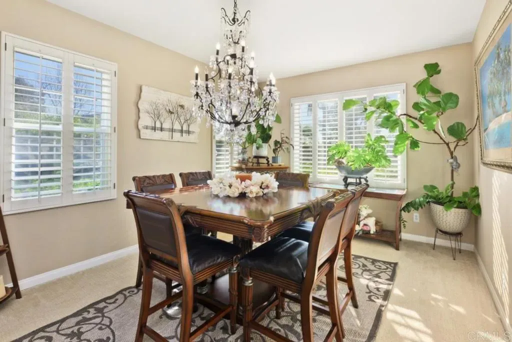 Over 3,500 square feet of well maintained luxury living in Viadana. Private corner lot on quiet street. Ideal home for multi-generational living with large junior master suite on entry level (has private entrance from exterior). Highly upgraded interior: plantation shutters, custom built-in in family room. Spacious master suite with sitting area. CARLSBAD SCHOOLS! Walk to Aviara Oaks Elementary and Middle School.
