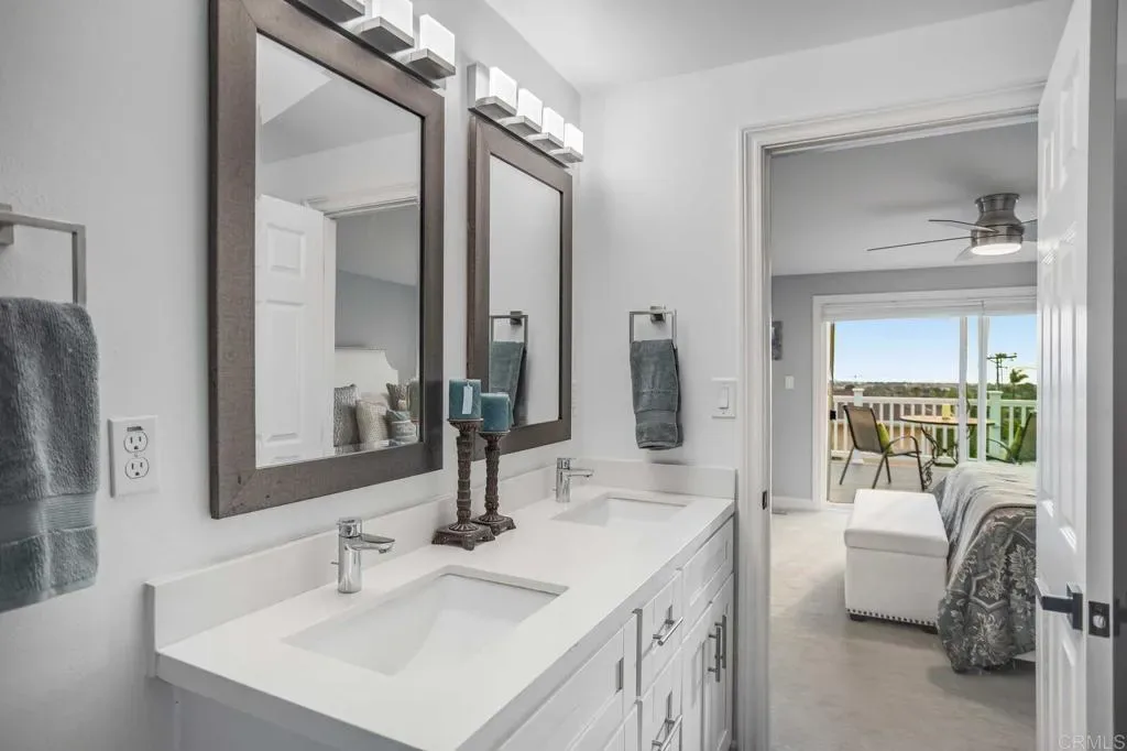 Awaken to OCEAN VIEWS, unwind with GLOWING SUNSETS and enjoy the COASTAL LIFESTYLE from this spectacular home set amongst SWAYING PALMS on a spacious corner lot. With a true CUSTOM home feel and meticulous care, this residence will appeal to those looking for a FLEXIBLE FLOOR PLAN offering many options, in addition to warmth, quality, and MOVE-IN READY condition. A wrought iron railing accents the staircase leading to the UPSSTAIRS PRIMARY RETREAT, which beckons with it’s abundant NATURAL LIGHT, breathtaking PANORAMIC OCEAN VEWS, and a PRIVATE DECK, the perfect place to enjoy morning coffee or evening sunsets. Another ocean view bedroom is also upstairs. On the main level are three more bedrooms, one of which could be a DOWNSTAIRS SECOND PRIMARY BEDROOM with en suite bathroom making it ideal for multigenerational living or extended guests. Designed for both comfort and ENTERTAINING, this open concept home flows beautifully from the kitchen to dining area and on to the main Living Room, graced by a gorgeous stone FIREPLACE. Adjacent, yet behind FRENCH DOORS is another separate “GATHERING ROOM” with window sliders to the pool deck and yard, perfect for indoor-outdoor parties. PLUS…. from there a PRIVATE SECOND STAIRWAY leads to an oversized upstairs BONUS ROOM that offers ..exceptional flexibility for a media room, guest quarters, home office, or gym with it’s high ceilings, a fresh-air balcony with SENSATIONAL OCEAN VIEWS and overlooking the RESORT-STYLE backyard complete with an outdoor kitchen, sparkling POOL, manicured grounds, mature palms & lush TROPICAL landscaping, all set against ocean views and coastal breezes. Located just minutes from bustling Carlsbad Village, shopping, dining, top-rated schools, and less than 10 minutes to SANDY BEACHES, this home offers the PERFECT BLEND OF LOCATION, LIFESTYLE AND FLEXIBILITY. Thoughtfully designed and perfectly positioned in the COVETED hills of Old Carlsbad, this is COASTAL LIVING at its finest! OPEN HOUSE TODAY 4/10 4:30-6:30 P.M.
