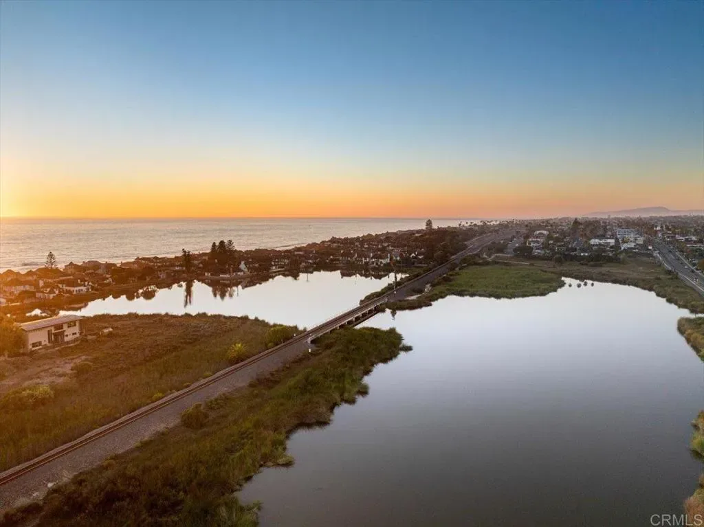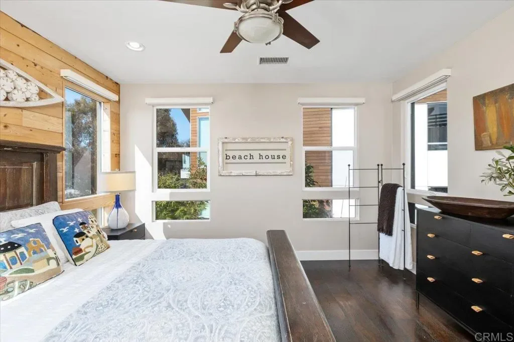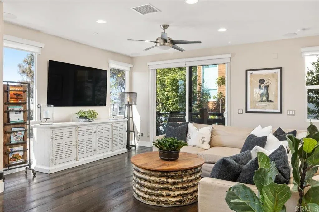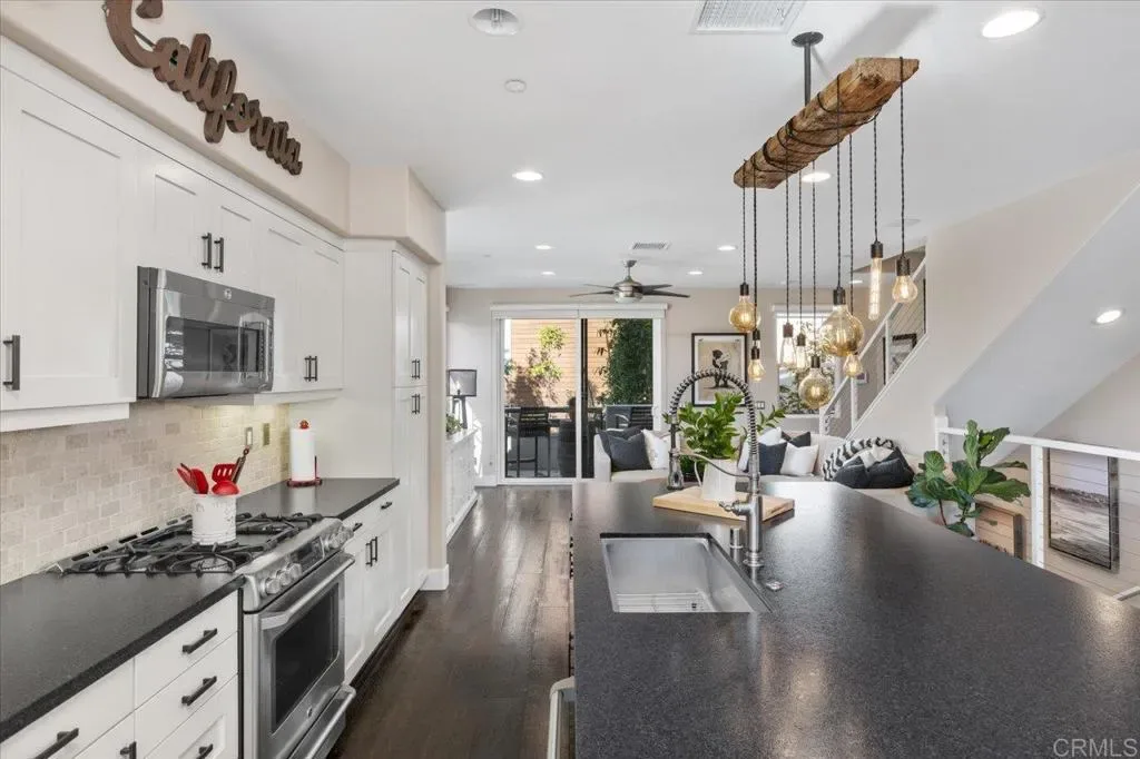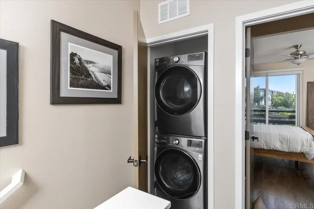 Live the Luxury Coastal Lifestyle in the Heart of Carlsbad Village! Welcome to your dream retreat on State Street, where modern sophistication meets laid-back coastal charm. With over 2,100 square feet of beautifully designed interior space and an expansive, private rooftop deck, this swanky coastal condo places you within steps of the lagoon, beach, boutique shops, and the vibrant dining scenes of both downtown Carlsbad and South Oceanside. Natural light floods every level of this three-story end unit, highlighting custom finishes, rich wood floors, high ceilings, and an effortless flow throughout. Enter through the private courtyard or your oversized two-car garage into a versatile first-floor flex space -perfect for a living area, guest suite, or home office. The second floor showcases the heart of the home with a stunning chef’s kitchen featuring a large island with leathered granite countertops, custom cabinetry, designer fixtures, and top-of-the-line stainless steel appliances. The open-concept dining and living areas are ideal for entertaining or relaxing, complemented by two balconies- one for morning coffee or evening BBQs and another charming French balcony right off the dining room. Upstairs, the third-floor hosts both bedrooms and laundry. The guest suite includes an ensuite bath, a walk-in closet, and its own French balcony. The primary suite is a serene sanctuary with west-facing windows framed by eucalyptus trees, a spacious walk-in closet plus two additional closets, and a spa-inspired bath with dual vanities and a spacious shower. Saving the best for the last…the final and fourth floor takes you to your private rooftop deck – the ultimate outdoor escape- offering panoramic ocean and city views, refreshing sea breezes, and unforgettable sunsets over the Village. Whether enjoying morning coffee, sunset dinners, or starlit gatherings, this is the space that will make you fall in love with coastal living for the first time or all over again. Additional features include dual A/C units, a whole-house water filtration system, EV charger, ample storage, custom window blinds, and ceiling fans throughout. Seagrove is just steps from the best that Carlsbad Village and South O have to offer -world-class dining, local boutiques, beaches, train station and coastal trails -this home blends luxury, convenience, and the irresistible energy of seaside living. Your coastal dream home awaits.