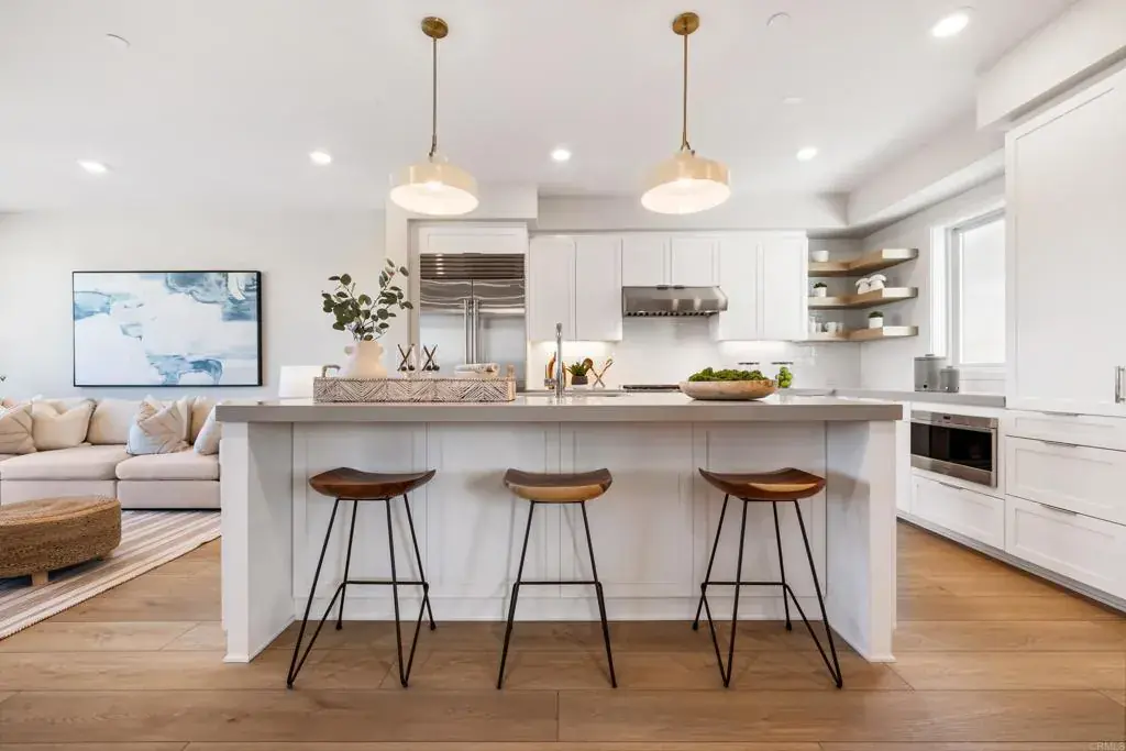 NEW construction, 2 blocks to Tamarack Beach! Final Closeout Sales Event – Ask about limited-time builder incentives. Experience coastal luxury at The Currents—a brand-new enclave of nine modern townhomes just steps from Carlsbad’s sunlit Tamarack Beach. Nestled on Chinquapin Avenue, this exclusive community seamlessly blends contemporary design with timeless seaside charm. 320 Chinquapin is move-in ready corner-unit offering a lock and go lifestyle with 4 bedrooms, 3.5 baths, and 2,265 sq. ft. of thoughtfully crafted living space. Designed for effortless indoor-outdoor living, the home features a private fenced yard, two breezy decks, and an open-concept layout that invites natural light throughout. High-end finishes define the interiors: a chef’s kitchen with Wolf and SubZero appliances, quartz countertops, and an oversized island; stylish LVP flooring; designer-selected tile, lighting, and hardware; plus Delta and Kohler plumbing fixtures. The great room extends seamlessly to a deck via stacking Western doors, while the primary suite offers a spa-like bath, expansive walk-in closet, and private deck retreat. Additional highlights include a first-floor guest suite, third-floor laundry, abundant storage, and an attached two-car garage. Smart, sustainable features—owned solar and integrated home technology—enhance convenience and efficiency. Outdoors, the fenced yard is complete with a paver patio & turf. Ideally situated two blocks from Tamarack Beach, steps from the Agua Hedionda Lagoon, and within walking distance to downtown Carlsbad Village, The Currents offers an unparalleled lifestyle. From morning runs along the coastline to sunset strolls through the Village, this is more than a home—it’s your gateway to coastal adventure and laid-back luxury living. Video tour shown is of model home with same floor plan but some interior finishes may vary.