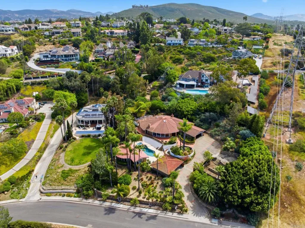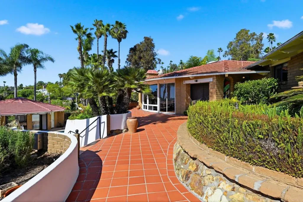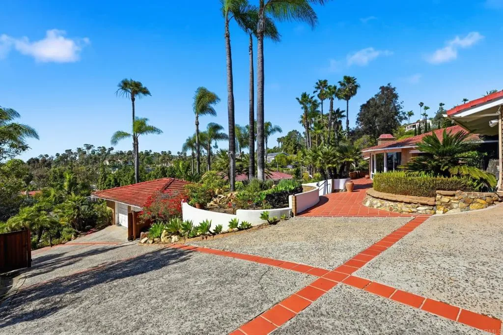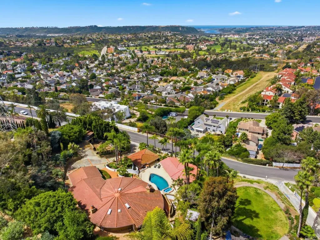 Rare Larry Weir designed Adobe Estate – Private Hillside Retreat with Panoramic Lagoon to Ocean Views in the Heart of La Costa on 0.8+ Acres-Discover timeless character and coastal elegance in this one-of-a-kind 1986 custom adobe masterpiece by renowned San Diego adobe pioneer Larry Weir. Gated and privately situated on an expansive 0.8+ acre (over 34,800 sq ft) parcel in desirable La Costa, this exceptional property offers unparalleled seclusion and breathtaking direct lagoon-to-ocean views that frame stunning sunsets from key living areas, patios, and beyond. The main residence spans approximately 3,030 sq ft with 3 bedrooms and 2.5 baths, featuring authentic thick adobe walls for natural thermal efficiency, dramatic wood-beamed ceilings, rounded architectural details, and an organic flow that blends old-world charm with coastal living. The outdoor compound is a true entertainer’s dream and private resort escape: Detached Tuscan-style wine cellar a romantic, vineyard-inspired haven (with storage room below) Enclosed stone circular double outdoor shower a spa-like sanctuary offering natural privacy and resort-style indulgence. Dual outdoor kitchens and BBQs – featuring an expansive side-rear chef’s station with a fabulous woodfired pizza oven, ample bar seating, plus a casual poolside grill zone for seamless indoor outdoor entertaining. Resort-style pool and spa with panoramic lagoon and ocean views, surrounded by spacious decking perfect for lounging and gatherings. Separate pool house/casita (843 sq ft)- ideal guest or in-law retreat with large bedroom, massive bath, ocean views, and partial kitchen setup. Additional small non-permitted studio w/herb garden (approx. 12×8 sq ft) with basement offering flexible bonus space. Additional highlights include two two-car garages (attached & detached), on-site ground-mounted solar panels (24 panels) with EV charging station (in attached garage) for energy efficiency and modern convenience, and convenient proximity to top-rated schools, Omni La Costa, golf, beaches, restaurants and upscale amenities. This legacy Weir adobe estate presents a rare opportunity to own a distinctive hillside property with unmatched views, privacy, and lifestyle potential perfect for buyers ready to personalize and create their dream coastal retreat. Truly one-of-a-kind.
