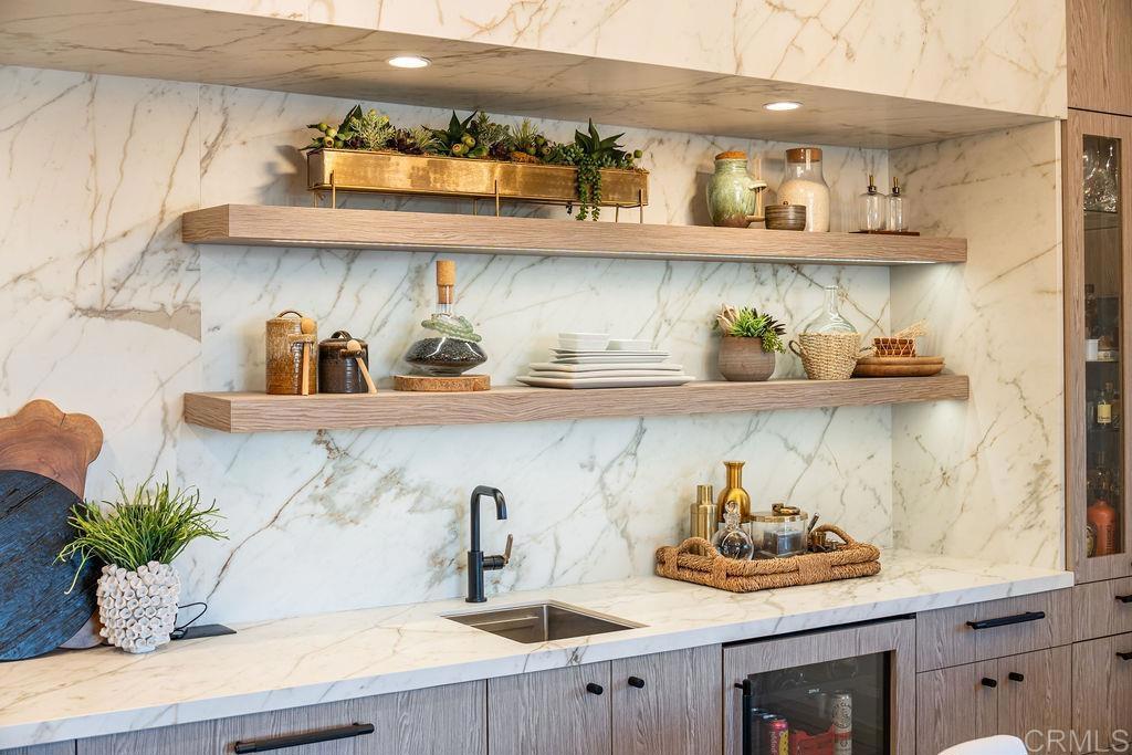 Experience elevated coastal living in this designer-curated, fully furnished luxury townhome–located just one block from the pristine beaches of Carlsbad and offered fully furnished and fully equipped. Built in 2017 and extensively remodeled in 2021 with premium materials, custom upgrades, and meticulous attention to detail, this lightly lived-in residence delivers an effortless, move-in-ready lifestyle that appeals to the discerning buyer who values both style and convenience. Perfectly positioned to capture ocean breezes without the heat of direct afternoon sun, the home offers a rare combination of comfort, privacy, and modern sophistication in one of North County’s most desirable coastal corridors. The entry level features direct access from the attached two-car garage, along with two spacious bedrooms and a full bath. On the main level, soaring ceilings and picture windows bathe the space in natural light. A sleek fireplace, Cantina doors for seamless indoor-outdoor flow, recessed lighting, and a glass-accented staircase add architectural drama to the main living space. The second floor has primary bedroom and guest bathroom. On the third floor you will find the second primary bedroom with ocean views This primary bathroom has a beautiful standalone tub and shower and a large built-in closet.
