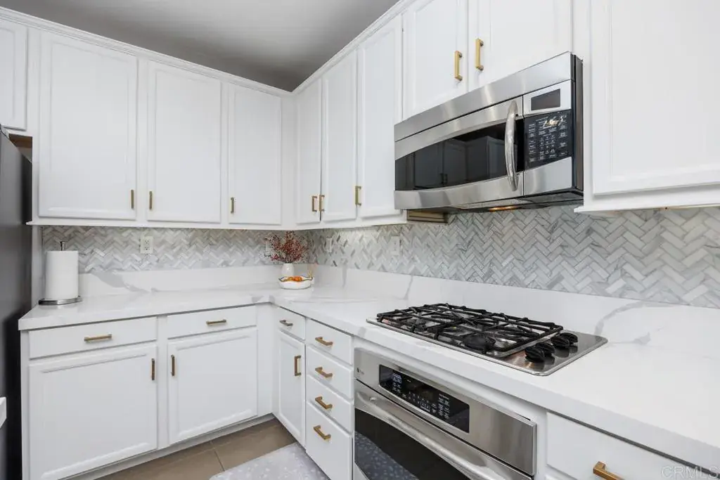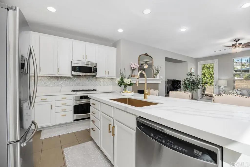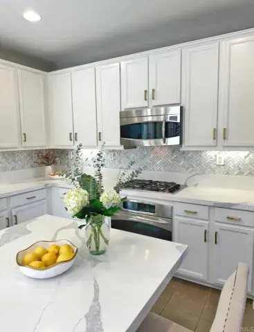One of the NEWER neighborhoods in La Costa, Built in 2011 in the community of 53 Melrose among the most charming circle of homes in the La Costa Ridge section of Carlsbad This single family home in Pristine condition with classic timeless decor The NEW kitchen says it all!! Brand new white kitchen with white Quartzite counter tops, marble herringbone backsplash, large plank tile flooring, gold hardware and large farmhouse sink. The Primary suite is light bright and spacious with a large soaking tub, NEW frameless glass shower surround, private balcony. Dr Horton built the home to be efficient with a gas fireplace in the family room that heats the room, stays cool in the summer but has A/C if needed. Handscraped hardwood low maintenance flooring on the 1st floor. Upstairs there is a family Bonus room/loft/office with 3 bedrooms ALL ensuite with black out shades, laundry room, Newer water heater. Private outdoor entertainment area has new sod with easy access to the kitchen for outdoor entertaining, low maintenance landscaping on low water system, 2 car garage with Extra long driveway for plenty of parking. 2028 sq ft with 3bed 4bath low HOA, TOP school district of SMUSD. Bordering Encinitas and San Marcos