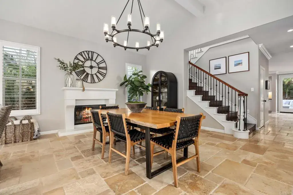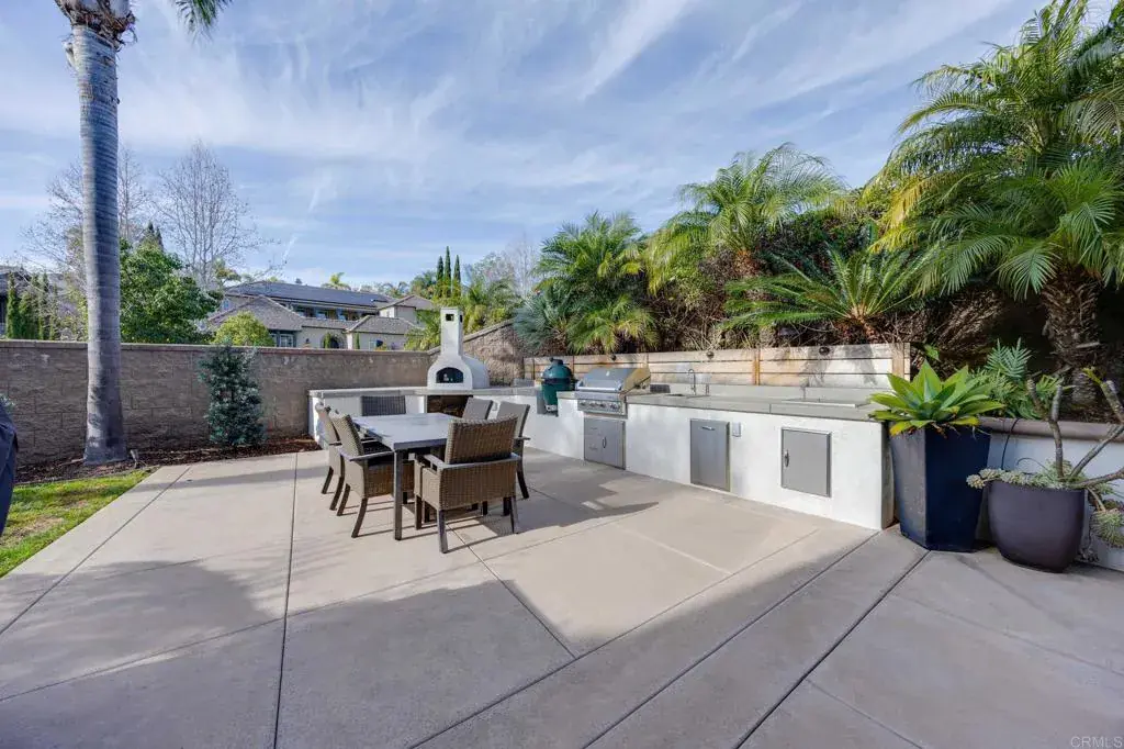 Located on a corner of a cul-de-sac in the coveted La Costa Oaks neighborhood, this beautifully updated two-story home offers 5 bedrooms and 3.5 bathrooms with a flexible, well-designed floor plan, highlighted by four fireplaces. The main living spaces include a spacious great room, bar, and a kitchen with a convenient exterior entrance, ideal for entertaining and everyday living. A highly desirable first-floor ensuite bedroom with its own exterior entrance provides the perfect space for guests, multigenerational living, or a private office. The living areas open through French doors to an oversized private courtyard, creating exceptional indoor-outdoor flow and showcasing a statement courtyard fireplace, perfect for year-round entertaining. The primary suite is thoughtfully appointed with French doors opening to a private balcony, custom California Closets, and a spa-inspired bathroom featuring a standalone soaking tub. The home has been thoughtfully updated throughout and includes paid solar with 33 panels, designed to produce approximately 120% of peak usage, a Tesla car charger, a solar pool heater, central speakers and a whole House Water Filtration System. The backyard is a true resort-style retreat featuring a pool and spa with water features, newer pool equipment including pump, heater, and filter, a newer salt cell, outdoor sauna, built-in BBQ, and pizza oven. Additional highlights include a 3-car garage and access to HOA amenities such as an exercise room, two pools, and a community room. Conveniently located with easy access to the coast, as well as nearby shopping, restaurants, and a movie theater, this home offers an exceptional blend of privacy, convenience, and lifestyle in one of North County’s most sought-after communities.