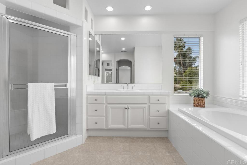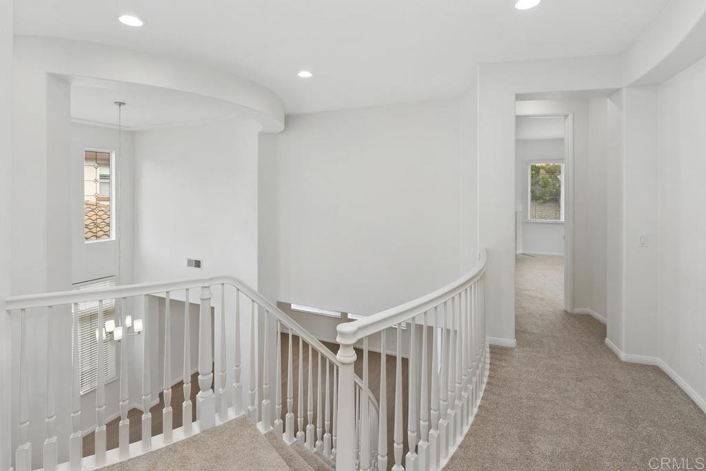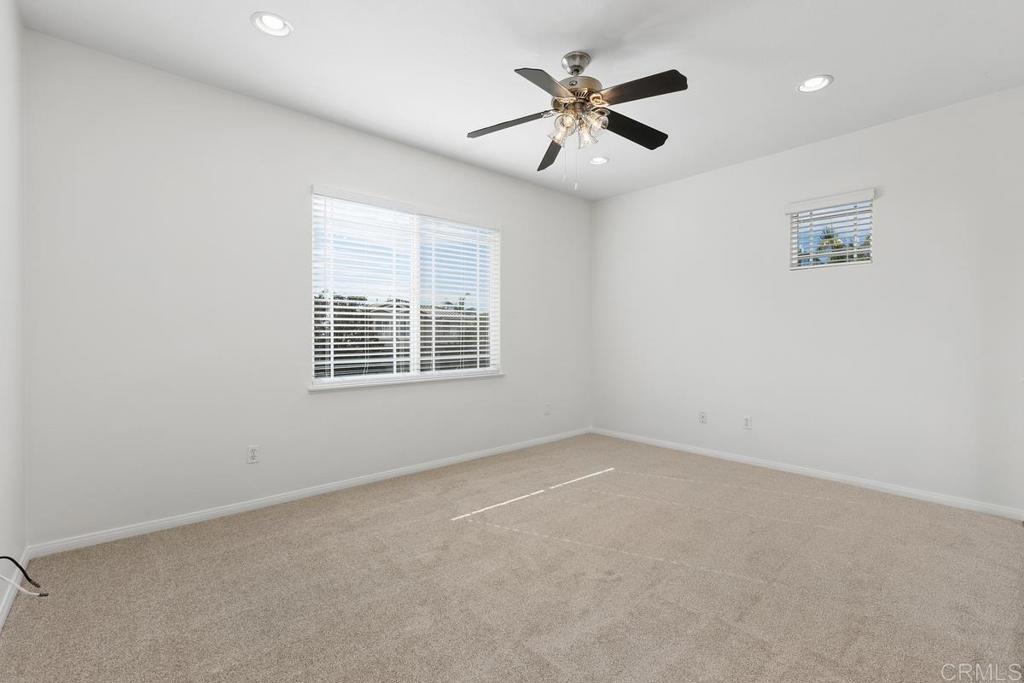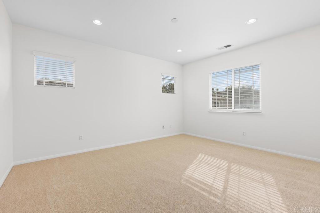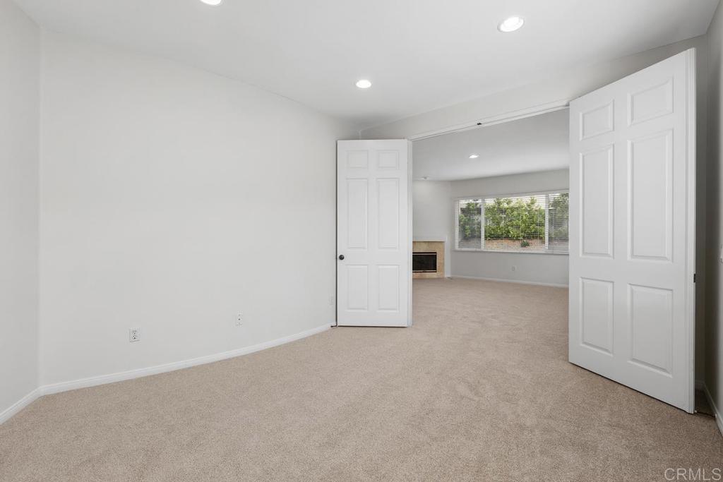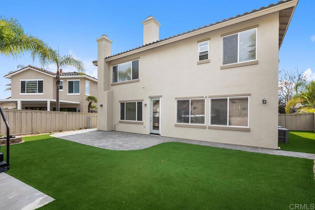 Gorgeous and updated Calavera Hills home offering 4 bedrooms plus a bonus room and full bath downstairs, owned solar, and a large yard with an oversized swim spa. A two-story foyer welcomes you, where new luxury vinyl plank flooring immediately draws the eye, and fresh interior paint adds a warm, inviting feel. The dining room features a wall of windows and soaring ceilings, filling the space with natural light and flowing into a spacious living room ideal for everyday living. The updated kitchen features new quartz countertops with a full backsplash, a large basin sink with a high-arc faucet, classic white cabinetry, and new stainless steel appliances, including a double oven, cooktop, microwave, and exhaust hood. A center island with a breakfast bar opens to the daily dining area and adjacent family room, centered on a fireplace. The main level also includes a bonus room with French doors, a full bath with a walk-in shower, and a laundry room with a sink and cabinetry. A curved staircase leads upstairs with new carpet throughout. The primary suite features a fireplace, two walk-in closets, and a large retreat the size of a bedroom, enclosed with French doors. The primary bath offers dual vanities, a seated vanity, a soaking tub, a walk-in shower, and a water closet. Three additional bedrooms, a hall bath with new LVP flooring, a walk-in linen closet, and an additional linen cabinet complete the upper level. The backyard is designed for entertaining and unwinding with low-maintenance turf, an expansive paver patio, a gas fire pit, an oversized swim spa, and a large paved side yard. Additional highlights include owned solar, newer dual-zone HVAC (2021), water heater (2021), Ring camera system, video doorbell, Ecobee thermostats, ceiling fans, updated light fixtures, and garage door openers. Ideally located near Calavera elementary and middle school, Lake Calavera Preserve with trails, parks, shopping, and a short drive to the beach.
