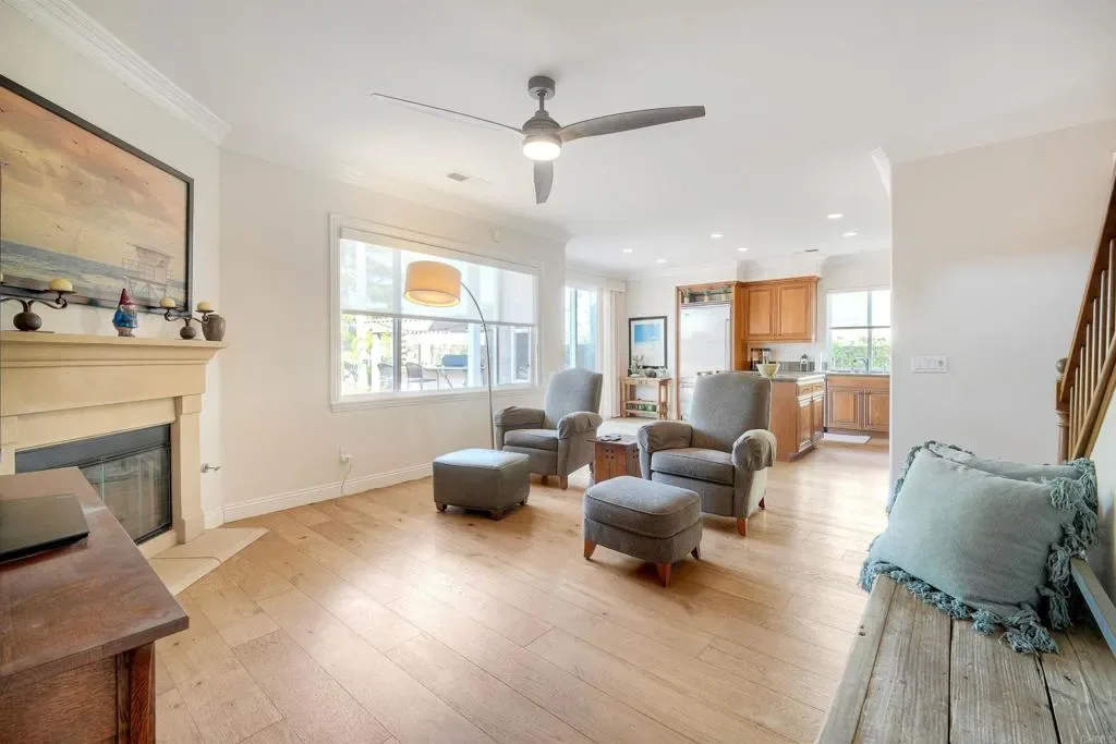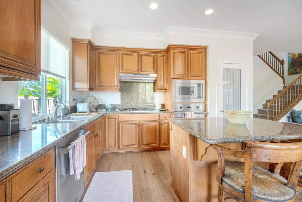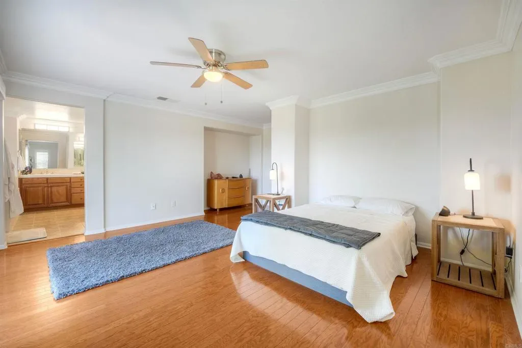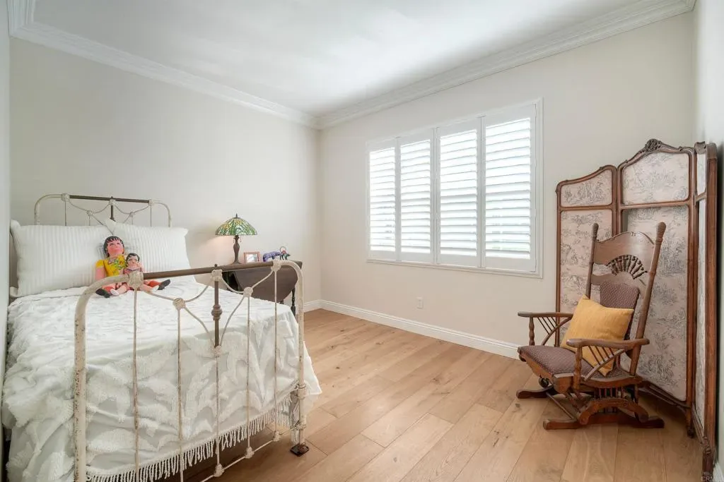 This Calavera Hills showstopper checks all the boxes! Located on a quiet cul-de-sac with peaceful area views! OWNED SOLAR! Versatile floor plan with two bedrooms and two baths on the main level! Large loft, upstairs laundry room, living and dining rooms, and inviting family room. Central air conditioning, plantation shutters, gorgeous wood flooring, extensive crown moulding. Incredible island kitchen opens to the family room with fireplace. View deck off primary bedroom. Huge, private backyard with BBQ, gazebo area, and beautiful brick. CARLSBAD SCHOOLS! Community pool and spa. Close to Calavera Hills Community Center & Park, Lake Calavera, and miles of hiking trails.