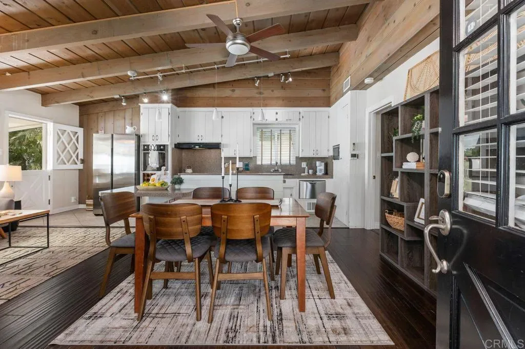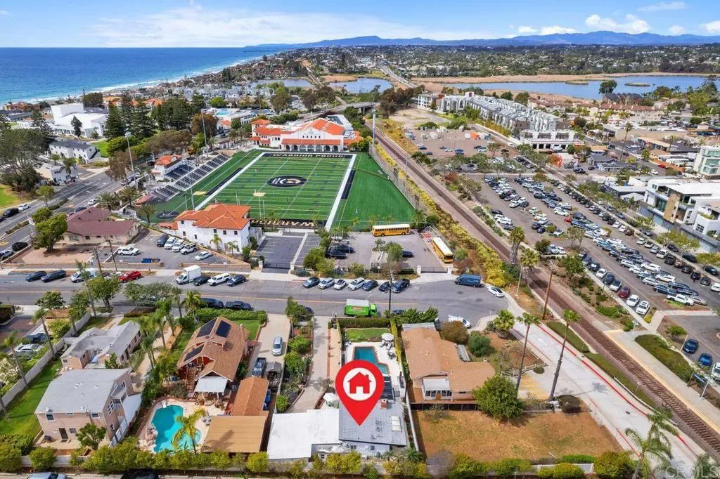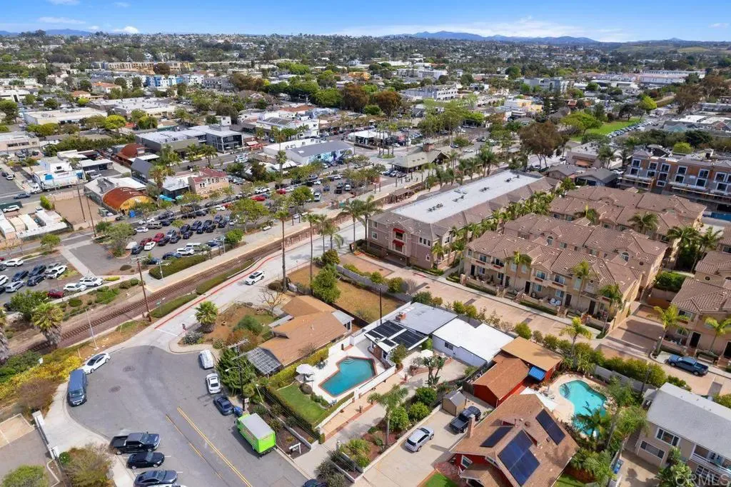 Discover an exceptional opportunity just steps from the beach in the heart of Carlsbad Village. Located within the highly desirable Village Redevelopment zoning, this expansive lot and home offers incredible potential for developers, investors, or homeowners seeking a coastal dream property. Whether you choose to maintain it as a successful vacation rental, build your dream home with an ADU, or explore possibilities for multi-unit residential or mixed-use development, the opportunities here are truly endless. The existing home features two spacious bedrooms, each with its own ensuite bathroom, along with an open floor plan highlighted by wood flooring and exposed wood beam ceilings. Two cozy fireplaces add warmth and charm, creating an inviting atmosphere throughout. Designed for the ultimate California indoor-outdoor lifestyle, the property boasts a built-in brick BBQ area, generous lounging spaces, and a private pool perfect for relaxing or entertaining. Enjoy outdoor dining, take a refreshing swim, or rinse off in the heated outdoor shower after a day at the beach. The grounds include fruit trees and a grassy area ideal for small picnics, or simply soaking in the coastal ambiance. This is a rare chance to own a versatile property in one of North County’s most sought-after locations—where lifestyle, investment potential, and coastal living come together. Professional photos Friday. Showings Friday 4-6 Saturday 1-4 and Sunday 1-3