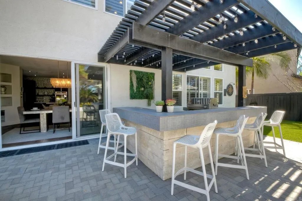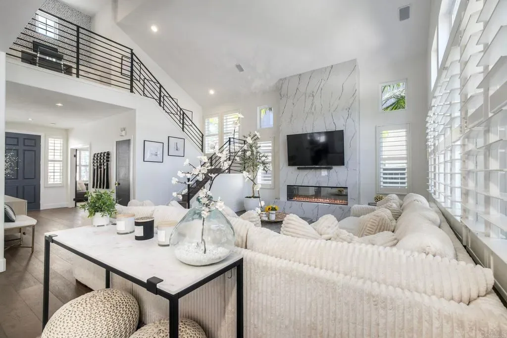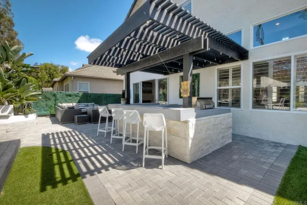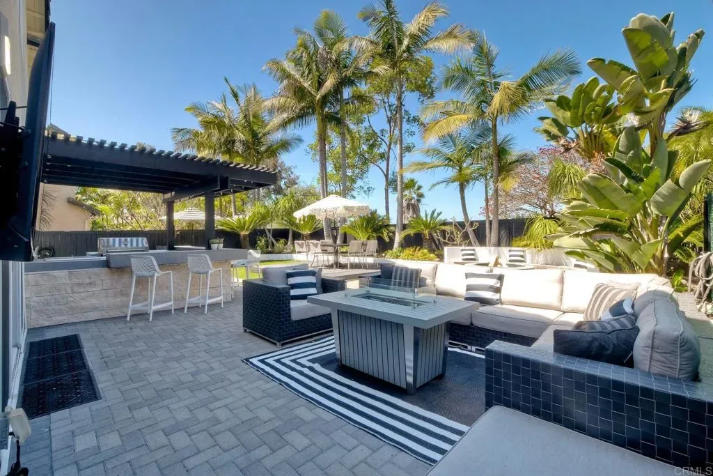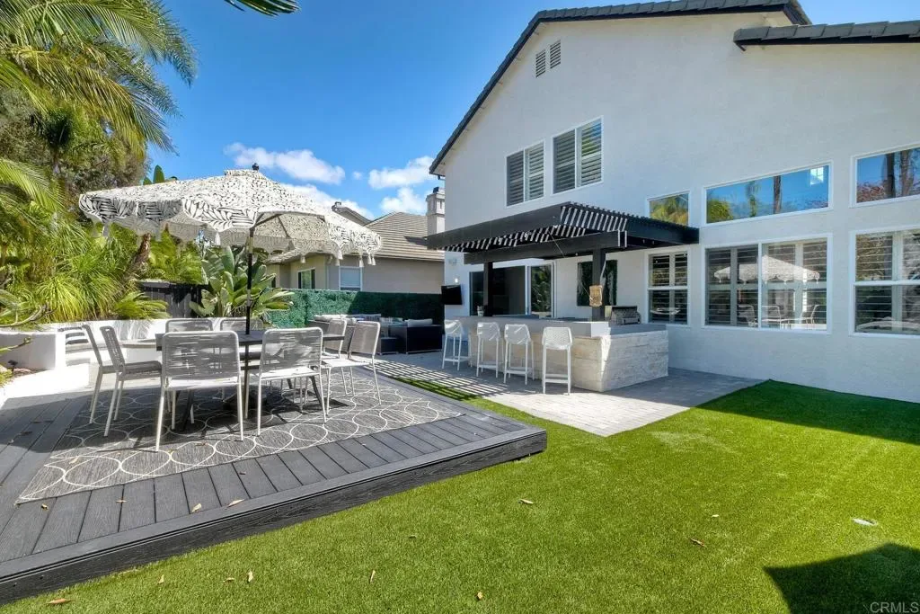 ELEVATED DESIGN MEETS CARLSBAD MODERN COMFORT! Experience the best of coastal Carlsbad in this beautifully upgraded home designed for comfort, style, and entertaining. As you enter this beautifully crafted home, you’ll notice oak flooring throughout, and beautifully remolded living area that has been opened to create a bright, modern layout with a structural beam addition; high ceilings centered around a stunning custom-built European style electric fireplace that makes the perfect setting for evening cocktails or just relaxing with family & friend. 1st floor Bonus room allows added space for family or game night. Open kitchen plan features Silestone Island counter & large dinning area that features a custom 4-panel bi-parting sliding door which brings in natural light and creates seamless indoor-outdoor flow–Leading into the private backyard that has no nieghbors behind, just greenbelt, rolling hill views and evening Sunsets which is a true extension of the home–featuring new fencing, gates and deck, fire pit, built-in BBQ bar with cooler, pergola, pavers, turf and mature landscaping–ideal for entertaining or relaxed coastal living while enjoying year-round Southern California weather! thoughtfully remolded bathrooms throughout feature decorative vanity’s and custom tile showers. Additional highlights include a built-in speaker system throughout the downstairs, primary suite and backyard, fresh interior and exterior paint, upgraded lighting and fans, 6″inch baseboards, plantation shutters, and a striking wrought iron staircase. The garage features epoxy flooring and overhead storage, attic space with ample storage space and drop down access for added functionality, plus ADT security system provide peace of mind.–Ideally located near scenic Calavera Mountain with hiking and biking trails and walking distance to the highly sought-after Carlsbad Unified School District. Pack Your Bags! and Enoy Carlsbad Living At Its Best this Summer!.