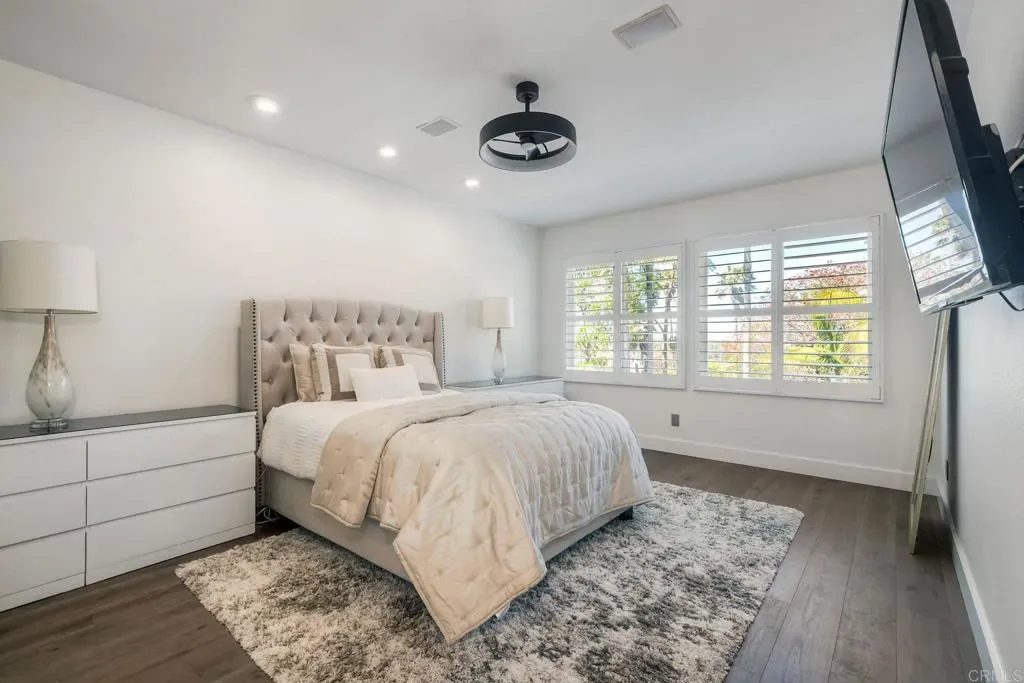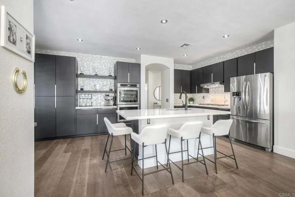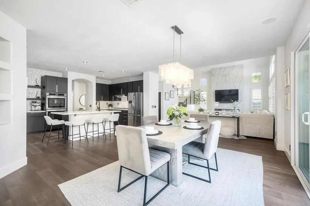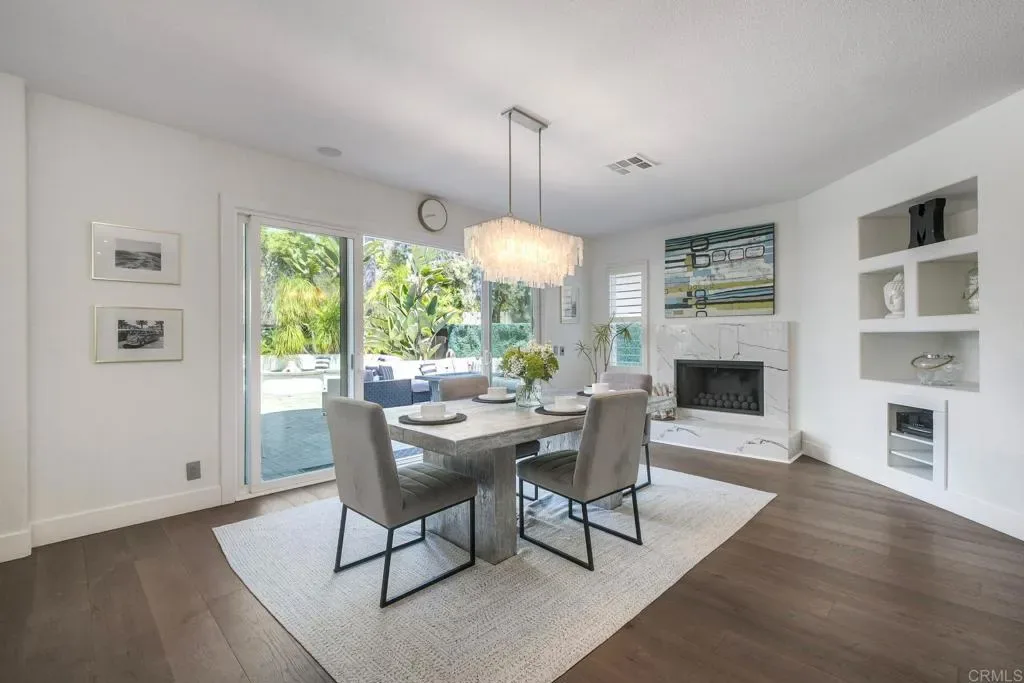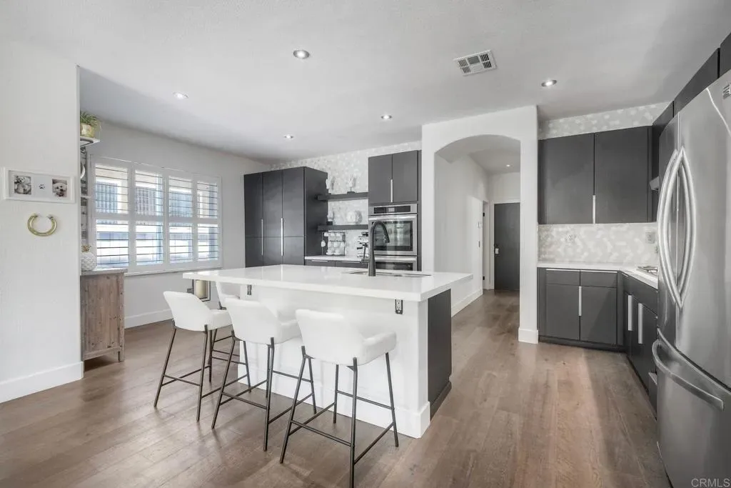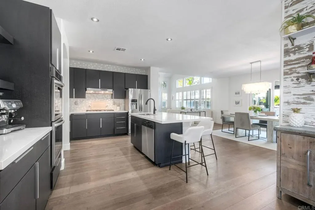 ELEVATED DESIGN MEETS CARLSBAD MODERN COMFORT! Experience the best of coastal Carlsbad in this beautifully upgraded home designed for comfort, style, and entertaining. As you enter this beautifully crafted home, you’ll notice oak flooring throughout, and beautifully remolded living area that has been opened to create a bright, modern layout with a structural beam addition; high ceilings centered around a stunning custom-built European style electric fireplace that makes the perfect setting for evening cocktails or just relaxing with family & friend. 1st floor Bonus room allows added space for family or game night. Open kitchen plan features Silestone Island counter & large dinning area that features a custom 4-panel bi-parting sliding door which brings in natural light and creates seamless indoor-outdoor flow–Leading into the private backyard that has no nieghbors behind, just greenbelt, rolling hill views and evening Sunsets which is a true extension of the home–featuring new fencing, gates and deck, fire pit, built-in BBQ bar with cooler, pergola, pavers, turf and mature landscaping–ideal for entertaining or relaxed coastal living while enjoying year-round Southern California weather! thoughtfully remolded bathrooms throughout feature decorative vanity’s and custom tile showers. Additional highlights include a built-in speaker system throughout the downstairs, primary suite and backyard, fresh interior and exterior paint, upgraded lighting and fans, 6″inch baseboards, plantation shutters, and a striking wrought iron staircase. The garage features epoxy flooring and overhead storage, attic space with ample storage space and drop down access for added functionality, plus ADT security system provide peace of mind.–Ideally located near scenic Calavera Mountain with hiking and biking trails and walking distance to the highly sought-after Carlsbad Unified School District. Pack Your Bags! and Enoy Carlsbad Living At Its Best this Summer!.
