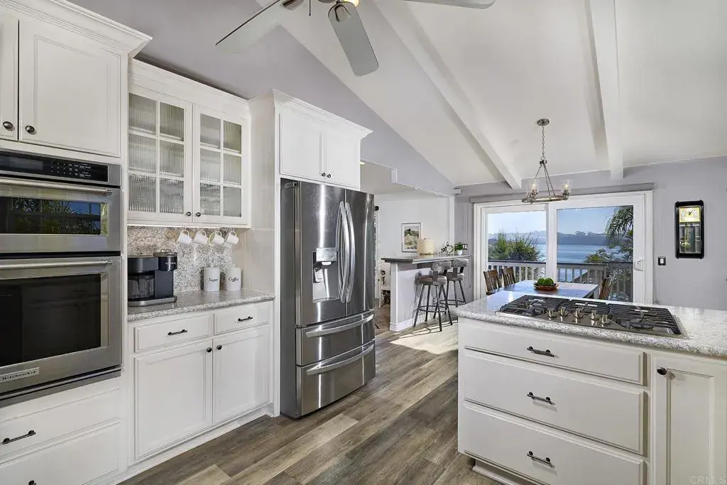 Wake up to shimmering lagoon views and ocean breezes from this stunning Carlsbad retreat perched right on the water’s edge! This 3-bedroom, 2.5-bath home blends relaxed coastal living with modern style in one of North County’s most sought-after locations. Step inside to a light-filled great room with soaring vaulted ceilings, a spacious living area, and a large deck that spans the dining and living rooms—perfect for morning coffee or sunset dinners overlooking the water. The spacious primary suite is a serene retreat with sweeping lagoon vistas, while the lower level features two additional bedrooms separated by a cozy den and direct access to the beautifully landscaped backyard—ideal for guests or a quiet home office space. Every room in the home showcases luminous water views, filling the interior with natural light and coastal serenity. Highlights include an oversized, attached two-car garage with sleek epoxy flooring, solar panels, upgraded bathrooms and thoughtful updates throughout. Nestled in a central location just minutes to Carlsbad Village and the beach, you’ll love the short distance to Michelin star restaurants, local boutiques, and the surf. Whether you’re hosting friends on the deck, launching a paddleboard from the lagoon, or watching the sunset melt into the Pacific, this home truly captures the spirit of coastal California living.