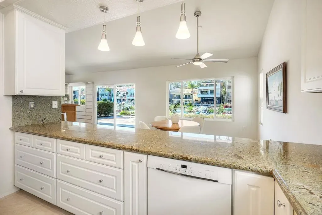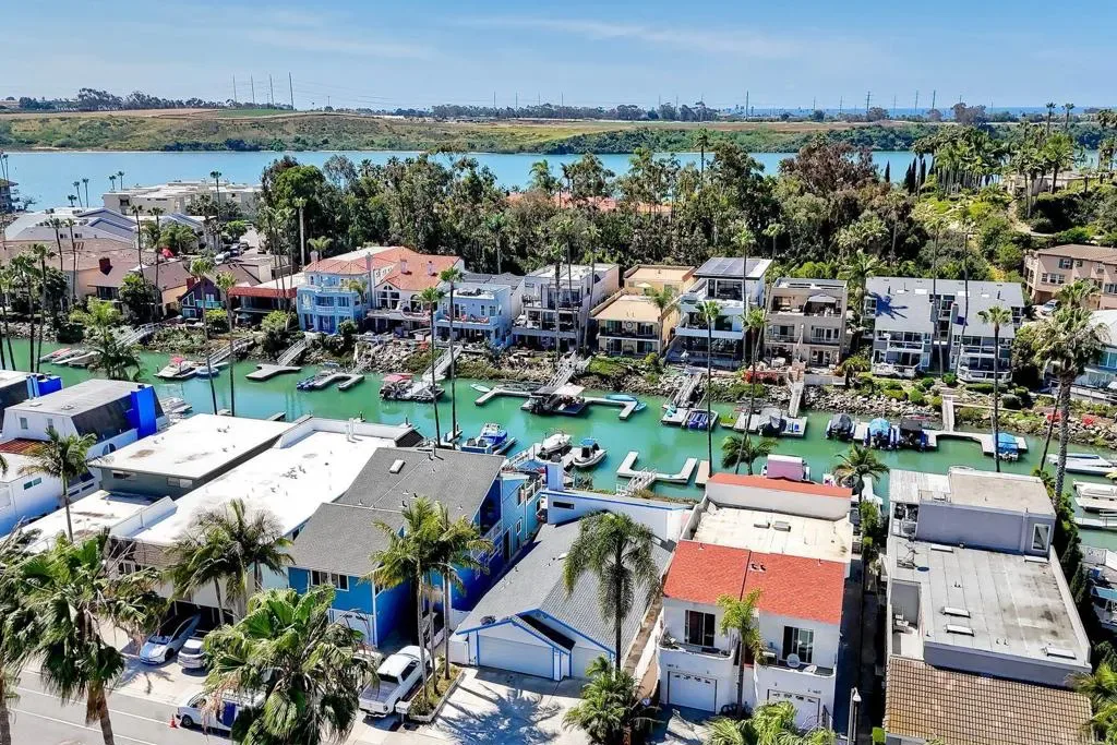 EXPERIENCE WATERFRONT LIVING IN BRISTOL COVE! This special property offers a rare chance to own one of the few single-family homes in this highly sought-after coastal community. Set on Agua Hedionda Lagoon, this single-story residence includes a private dock, two boat slips, and a spacious west-facing waterfront patio ideal for sunset views, relaxed evenings by the water, and enjoying Bristol Cove’s one-of-a-kind boating lifestyle. The 1,425 square foot home offers 2 bedrooms, 2 baths, and a flexible space for an optional third bedroom or office. Water views and abundant natural light give the home a warm coastal feel, with a vaulted-ceiling living room, timeless white cabinetry, a cozy bar area, and an inviting dining space. A rare three-car garage provides ample room for parking and storage, with potential future conversion of one bay to a junior ADU. Whether enjoyed as-is or renovated over time, the unique combination of detached waterfront living, private dock access, and future versatility makes this a truly special offering. Zoning also allows for duplex potential, creating additional opportunity for multi-unit use and development. Just minutes from Carlsbad Village, beaches, dining, shopping, and I-5. A rare opportunity to own one of Bristol Cove’s most coveted waterfront properties.