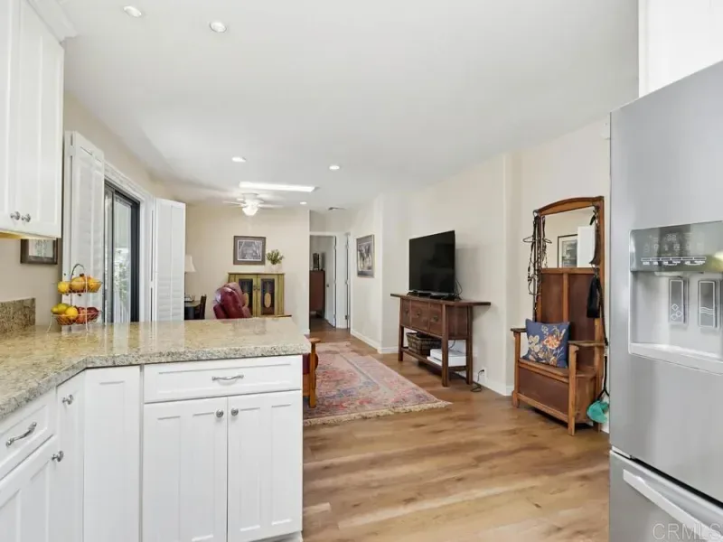 Welcome to your beautifully updated retreat in the heart of Carlsbad! This thoughtfully improved 2-bedroom, 2-bathroom home blends comfort, style, and coastal charm in one of North County’s most desirable 55+ communities. Great primary home, vacation home, or investment property. The golf cart is included! Step inside to discover a bright, refreshed interior featuring new paint throughout, elegant Coretec luxury vinyl plank flooring, and stylish new light fixtures that elevate every space. Brand-new interior doors and frames add a crisp, modern finish, while updated ceiling fans enhance comfort year-round. The inviting living and dining areas flow seamlessly into the kitchen, where a new kitchen faucet complements the home’s many tasteful upgrades including granite counters. Both bathrooms have been enhanced with new Kohler toilets, and the secondary bath has been beautifully reimagined with a new tiled shower and added ceiling heater for spa-like comfort. The primary bedroom has been thoughtfully modified to include additional storage and a convenient coat closet, creating both functionality and organization without sacrificing space or style. A second modified bedroom w/ organized closet and full bath provide flexibility for guests, family, or a home office. Outside, the improvements continue with new landscaping that enhances curb appeal and outdoor enjoyment. The newly widened driveway, accented with charming arched stanchions, offers both visual appeal and added convenience. The newer storage shed stays with the property. With extensive upgrades inside and out, and a prime location near Carlsbad’s renowned beaches, shopping, dining, and top-rated schools, this move-in-ready home offers the very best of Southern California living. Thoughtfully improved and beautifully maintained, it’s a place you’ll be proud to call home.