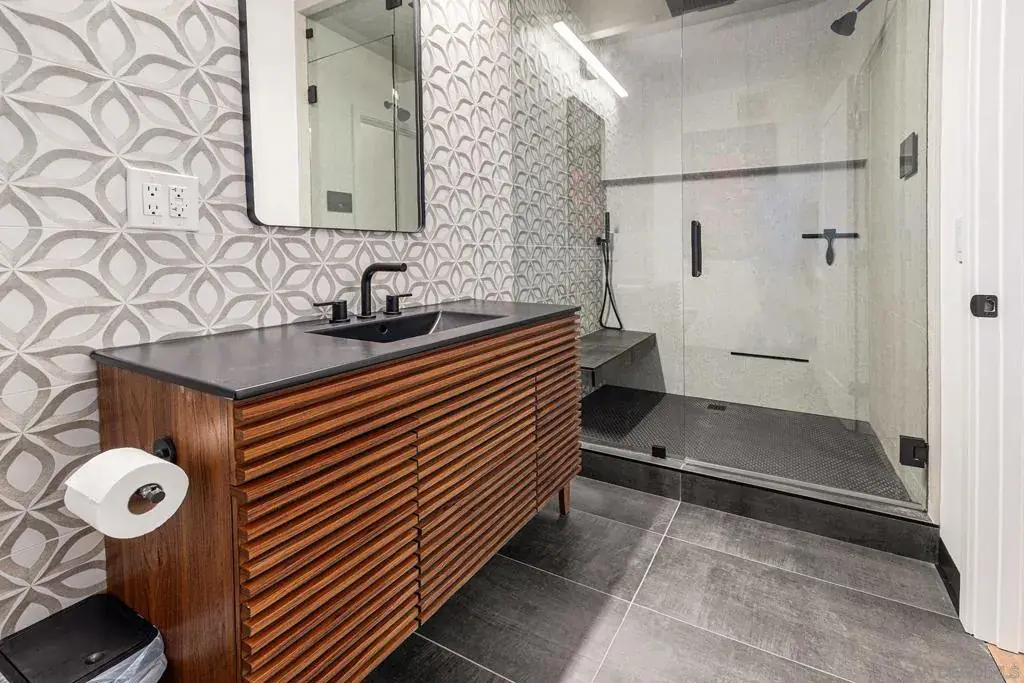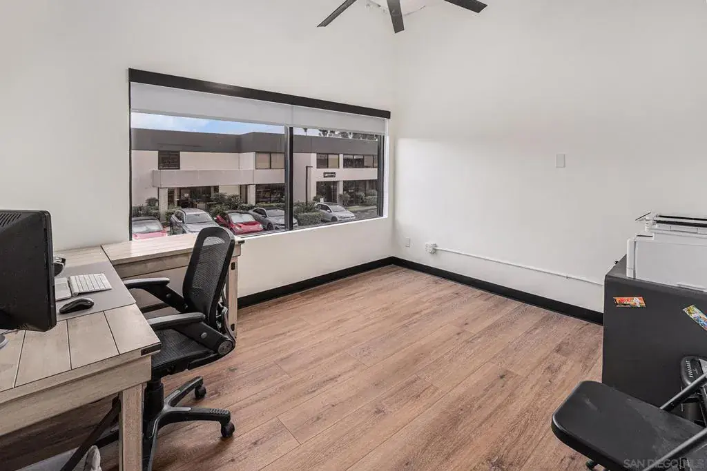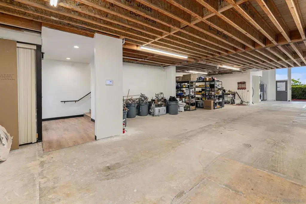 Versatile and recently upgraded flex condo in an ideal Carlsbad location. Currently used by owner as operations HQ for a plumbing contracting business, the condo features a wide open storage/indoor parking area spanning the full length of the ground floor. This allows for work vehicles access via the 15′ roll up door to keep equipment and supplies secure. Ground level also features a half bathroom, recently constructed kitchen area and laundry. The built out second level is air conditioned via 4 mini split systems and features 2 private offices, a full bathroom, an open reception/conference/flex space, plus additional storage rooms. The upstairs bath features top of the line fixtures and finishes including a fully computerized shower system with steam, music, lighting and aromatherapy built-in. Well suited for a wide variety of operations requiring storage/working space along with well appointed offices. The prime North County location supports easy access to El Camino Real corridor as well as Fwys 5 and 78. Current owner improvements have all been complete in the last 5 years. High quality, versatile functionality and low maintenance opportunity.