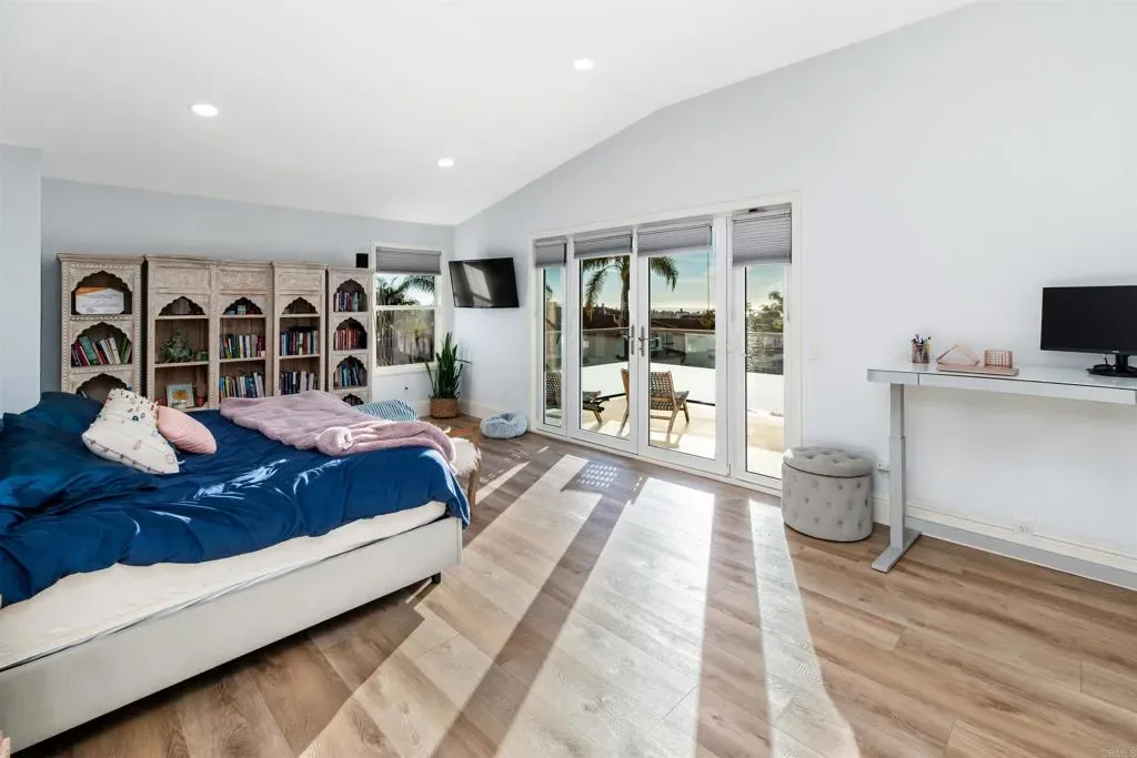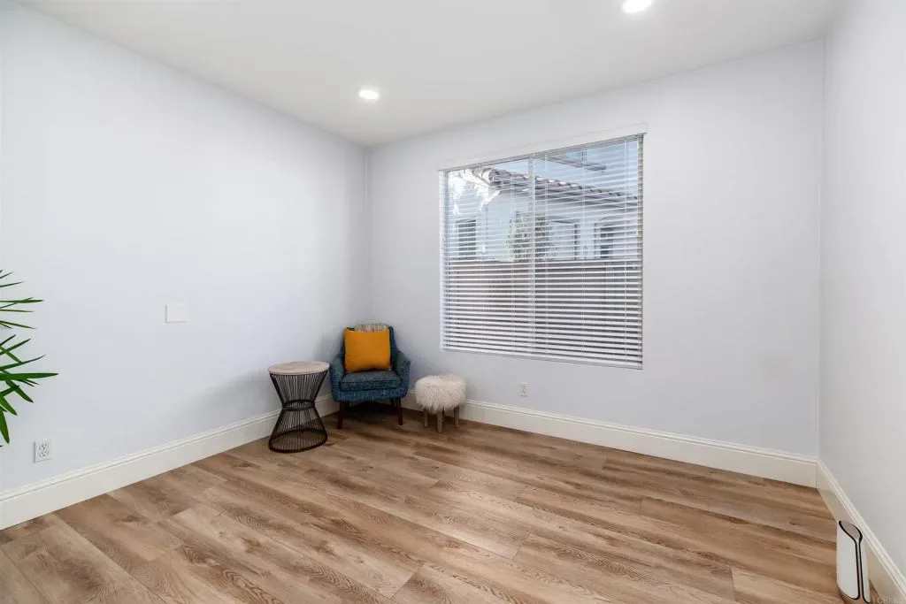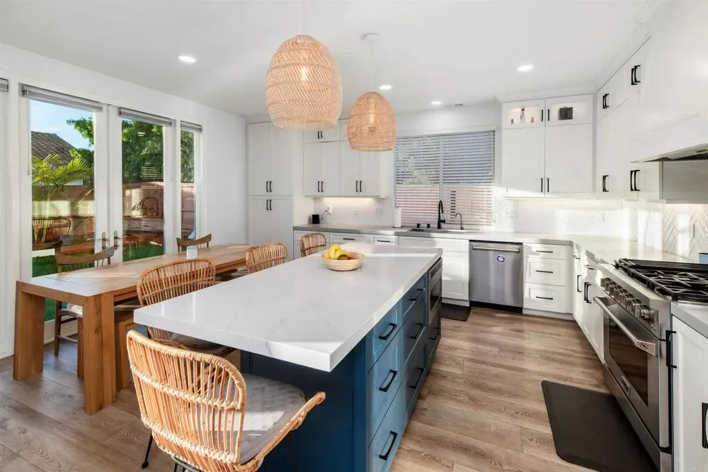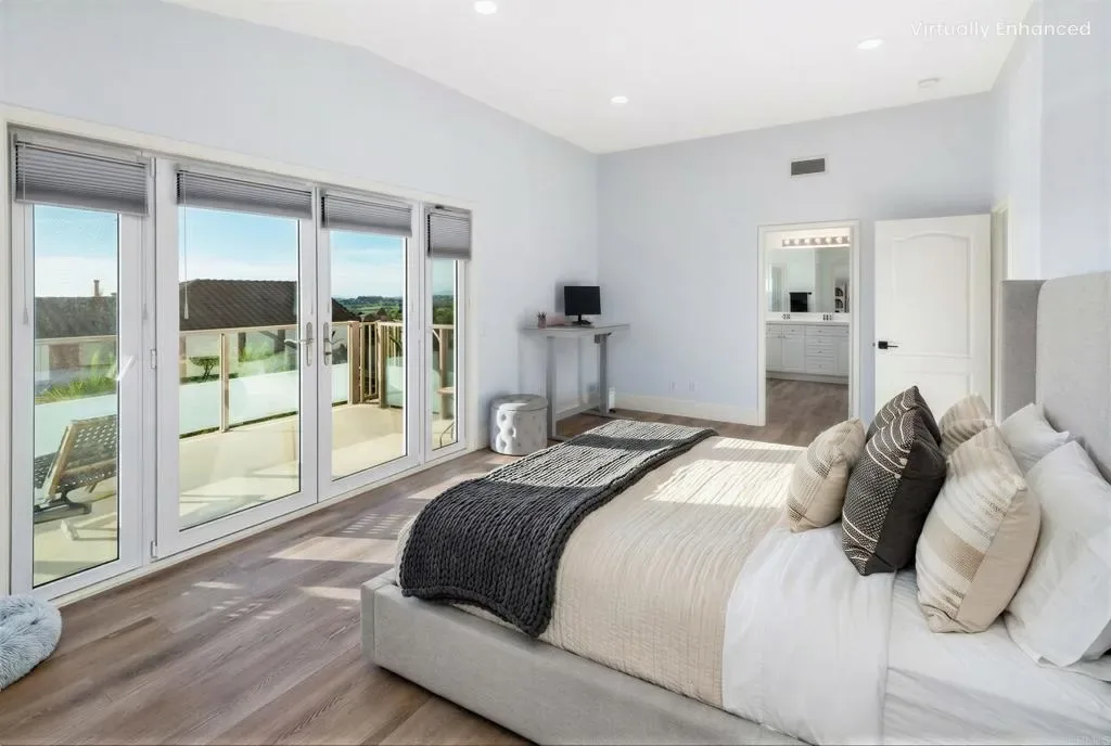 Tucked within the gated community of Mar Brisa, this beautifully upgraded home blends modern finishes, thoughtful updates, and a welcoming neighborhood setting on a peaceful cul-de-sac. With soaring double-height ceilings greeting you at the entry, the home immediately feels open, bright, and airy, enhanced by an abundance of natural light and expansive windows overlooking the backyard. Nearly every detail has been refreshed within the past five years, including a fully remodeled kitchen, luxury vinyl flooring, baseboards and crown molding, interior and exterior paint, doors, recessed lighting, light fixtures, landscaping, turf, and fresh mulch surrounding the home. The stunning kitchen serves as the heart of the home, featuring a quartz slab island, matte grey quartz counters, sleek stainless steel appliances, a 6-burner Kucht range with pot filler, and Kucht microwave, creating a space that is both functional and beautifully designed for everyday living and entertaining. The living room offers a cozy fireplace and an effortless connection to the backyard, where multiple glass doors and windows line the back of the home, filling the space with natural light and creating a seamless indoor-outdoor feel. The yard has been refreshed with new turf and updated landscaping, creating a low-maintenance space perfect for relaxing or gathering with friends. Upstairs, the spacious primary suite feels like a true retreat, complete with a private balcony offering ocean views and unforgettable sunsets. A unique spiral staircase connects the backyard directly to the balcony deck, which features glass panels for unobstructed views. The large en-suite bathroom offers a generous footprint with a separate soaking tub and shower. All secondary bedrooms are located upstairs, along with a versatile bonus room that can function as a home office, game room, media room, or potential fifth bedroom. French doors allow the room to be closed off for full privacy when needed. The main level also features a downstairs bedroom and adjacent half bath with architectural plans already completed for conversion to a full bathroom, creating an excellent opportunity for a private guest suite or multigenerational living space. Residents of Mar Brisa enjoy gated access along with two neighborhood parks and a beautifully remodeled saltwater pool and jacuzzi, perfect for summer days spent relaxing with neighbors in this friendly community. Additional highlights include financed solar, thoughtful upgrades throughout, and a location just minutes from Carlsbad’s beaches, shopping, dining, and highly regarded schools. A rare opportunity to enjoy coastal views, modern upgrades, and an exceptional community lifestyle in one of Carlsbad’s most inviting gated neighborhoods.
