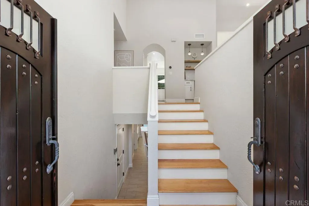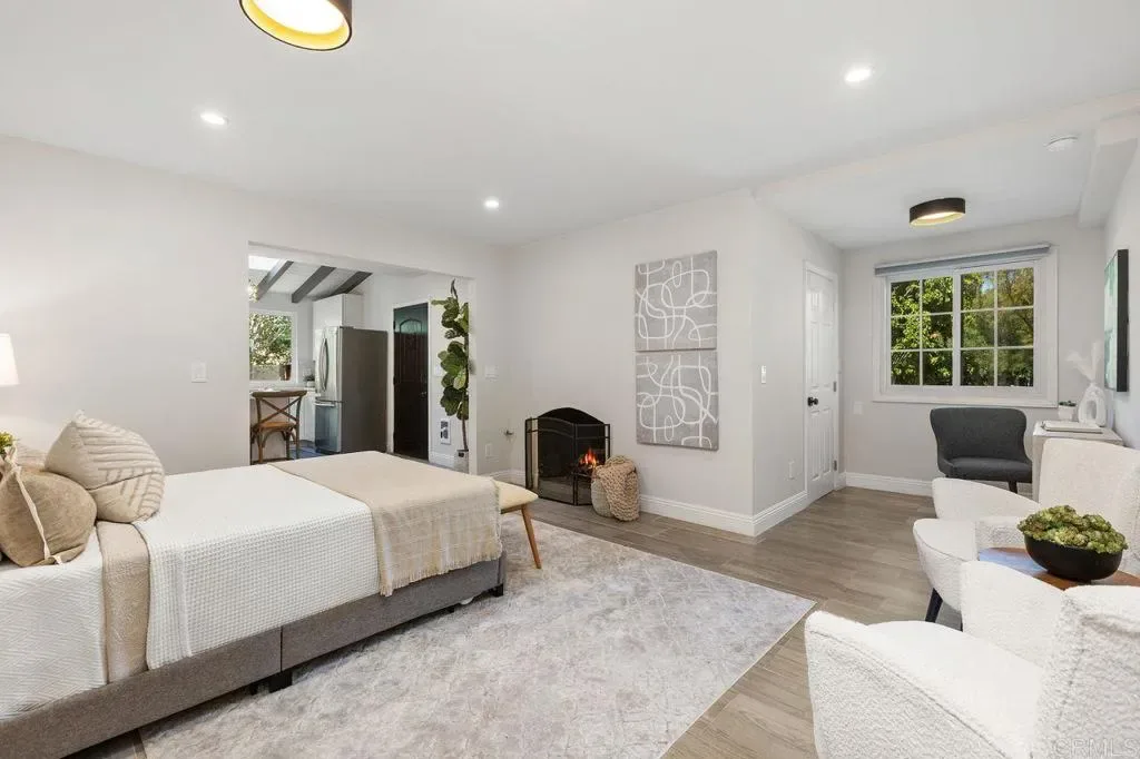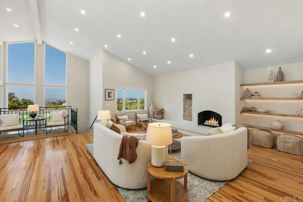 Perched atop a scenic hill, this custom home offers views of the distant ocean and mountains—stretching as far as the eye can see. Expansive windows flood the home with natural light while perfectly framing picturesque vistas. Designed with versatility in mind, this property is ideal for multi-generational living or income potential. The Jr. ADU with its own separate entrance; includes a full-size kitchen, dining area, a washer/dryer room with storage, a cozy fireplace, walk-in closet, dedicated desk space, and a full ensuite bathroom.The main residence is a thoughtfully designed split-level home. Upstairs, you’ll find the primary suite and main living area, both embracing an open-concept layout. The primary bedroom is a true retreat—complete with a freestanding soaking tub, separate walk-in shower, spacious dual-sink vanity, and an expansive walk-in closet that even includes its own washer and dryer for added convenience. In the main living area, unwind by the fireplace with elegant ceramic fireballs as you take in the VIEWS!. Step outside from the kitchen and dining areas onto the upper-level wraparound deck—perfect for embracing California’s signature indoor-outdoor lifestyle, whether you’re dining, entertaining, or simply relaxing in the fresh coastal air. Downstairs, the secondary bedrooms offer comfort and privacy, each featuring French doors that open directly to the backyard—creating a seamless connection to the outdoors. The lush backyard is a true oasis, complete with a large swimming pool and sun deck, along with multiple dining and lounge areas ideal for entertaining or unwinding. There’s even space to grow your own produce, adding a charming, sustainable touch to this already exceptional property. Also on the ground level, you’ll find a spacious flex room with backyard access—perfect for a home office, gym, media room, or whatever suits your lifestyle. This is truly a luxury home—magazine-worthy in every sense—where thoughtful design, comfort, and breathtaking surroundings come together to create an extraordinary living experience