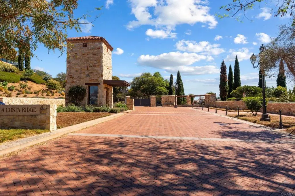 Due to medical issues on the buyers side (no fault of property) this home is now available again. Sitting high within the gated community of La Costa Ridge, this stunning single story home, built in 2007, is the epitome of Carlsbad living! The indoor/outdoor flow of this home is amazing with two inviting courtyards in addition to the awesome back yard area. Enjoy panoramic views from the snow-capped mountains in the east to the blue Pacific Ocean and Batiguitos Lagoon in the west. The impressive kitchen features granite countertops, stainless steel appliances (including double ovens, a warming drawer, and wine refrigerator) and a large walk-in pantry and a separate wine storage area. Improve your golf game on your own putting green, relax at day’s end on the raised seating area above the waterfall & pond with ocean views in the distance, and entertain with ease on the huge tumbled stone patio. The primary suite features amazing views, a cozy fireplace and an impressive bathroom with soaking tub and separate shower, as well as a huge walk-in closet. Each of the three bedrooms has ensuite baths, and one opens to the private front courtyard. The kitchen area also has a built-in home office cubby…perfect for today’s digital work needs. The two care garage is oversized with plenty of storage. Solar is paid for in full.