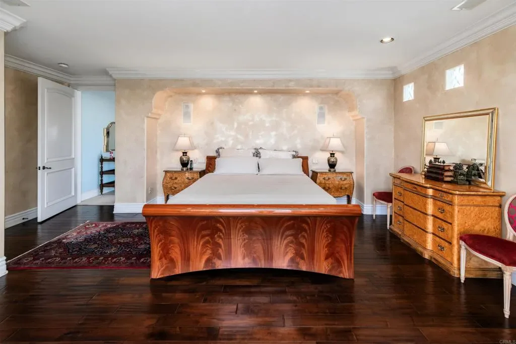 Welcome to a timeless estate in the prestigious gated community of Aviara Point, where classic architecture meets an exceptional golf course setting. Perfectly positioned along the fairways, this elegant residence offers sweeping views, a charming courtyard, and a rare sense of privacy. A grand entry sets the tone with soaring ceilings, stone columns, and graceful archways that carry throughout the home. Expansive living spaces are designed for both formal entertaining and everyday comfort, including a stunning great room with a wet bar that opens to a spacious terrace overlooking the golf course—an ideal setting for morning coffee or evening gatherings. The kitchen is both impressive in scale and thoughtfully equipped, featuring a double-wide built-in Sub-Zero refrigerator, Viking 6-burner cooktop, double ovens, and dual dishwashers. A massive walk-in pantry—cleverly concealed behind cabinetry—adds both function and a touch of intrigue. Upstairs, the primary suite offers a true retreat, complete with a private terrace overlooking the fairways. The spa-inspired primary bath is exceptionally spacious, featuring a very large steam shower, a separate jetted soaking tub, and a truly oversized walk-in closet that feels more like a dressing room. All bedrooms throughout the home include ensuite baths, providing comfort and privacy for family and guests alike. The main level includes a generously sized bedroom with a walk-in closet and ensuite bath—ideal for guests or multigenerational living. A fully detached one-bedroom apartment above the garages offers complete separation from the main home, perfect for extended stays or a private office. Additional highlights include a massive laundry room, whole-house water filtration system, and two separate garages—a two-car and a one-car—providing ample space for storage and flexibility. Recent improvements include new air conditioning systems and updated front landscaping with water-efficient design. Set within one of Carlsbad’s most coveted gated communities, this distinguished estate offers a rare opportunity to enjoy space, privacy, and a premier coastal location just moments from world-class golf, beaches, dining, and top-rated schools.