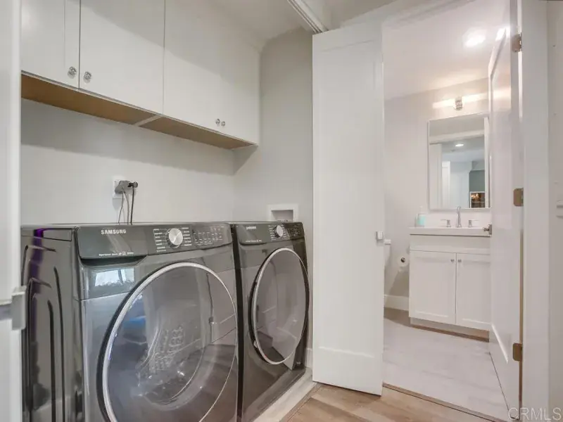 Live in the heart of Carlsbad Village in a quiet luxury complex just blocks to the beach! Experience city life in this modern single level with elevator located in the perfect spot in the village with minimal noise and maximum livability. The modern open floor plan features a dining area, huge kitchen with island, living room and a large deck overlooking the future Carlsbad Grand Ave Promenade. Enjoy quartz countertops, luxury flooring, white shaker cabinetry with soft close doors, chef’s kitchen with island, 2 counters that accommodate 8 bar stools for the ultimate entertaining experience. This gorgeous home offers custom paint, designer energy efficient LED lighting and mirrors, Hunter Douglas Sonnette Power View motorized blinds & custom plantation shutters, Bertazzoni Master Series appliances including 4 burner gas range, French door refrigerator + Sharp microwave drawer, full-size washer & dryer in-unit laundry & bonus of 2 additional storage closets off the private deck & walk-in storage closet in the breezeway. The primary bedroom has a slider to the balcony and the primary bath has a large walk in shower, a heated Toto and towel warmer, and a large walk-in closet. The second bedroom features a custom-built murphy bed, closets and office space. The home was built with style and comfort and has upgraded sound proofing so the city and neighbors are almost unnoticeable. This is such a great small complex with elevator in a surprisingly quiet area with great walkability! A new grocery store is being built right across the street. Walk to the beach, post office, bars and restaurants or just enjoy a sunset on the balcony with this rare opportunity! Motivated sellers