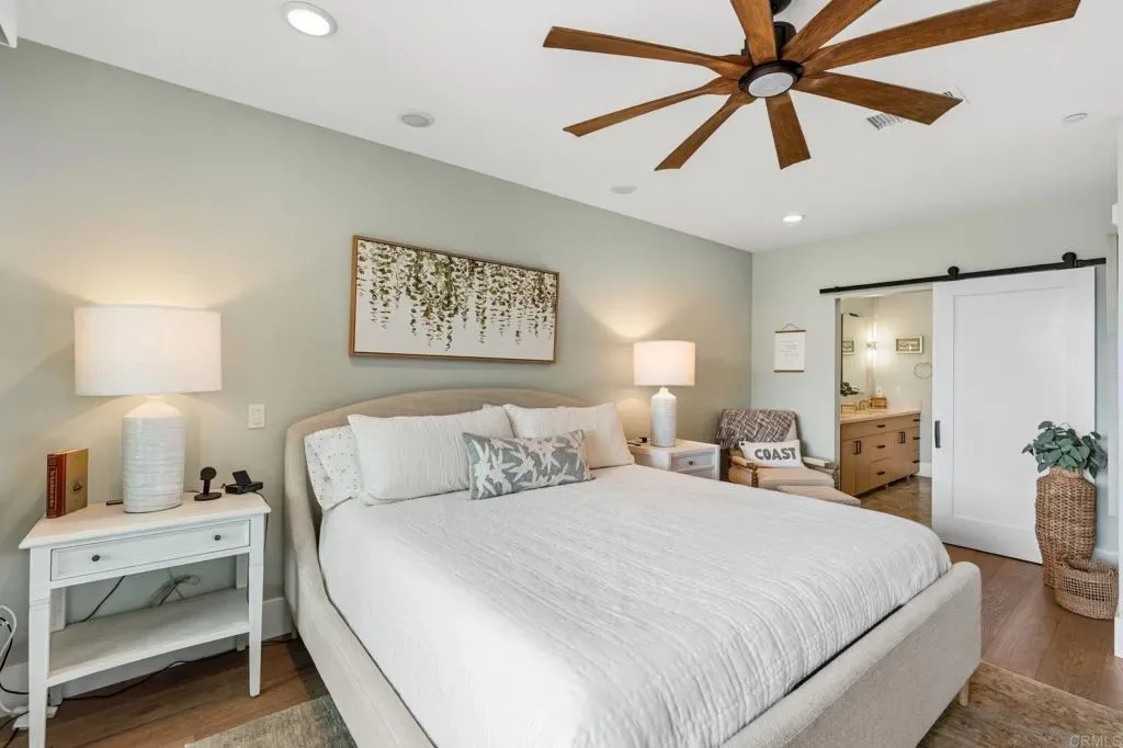 Located in the heart of Carlsbad Village, just steps from the beach, dining, and boutiques, this rare single-level corner residence at Grand Jefferson offers the ultimate in effortless coastal living. Built in 2022 and absolutely immaculate, this home lives like new and showcases a seamless blend of modern design and timeless finishes. Spanning approximately 2,112 sq ft, this 3-bedroom, 2.5-bath condo features true single-story living with elevator access, an incredibly rare find in the Village. The light-filled open floor plan is enhanced by expansive windows, white oak flooring throughout, and a private deck for indoor-outdoor living. The chef’s kitchen is both stunning and highly functional, featuring quartz countertops, paint-grade cabinetry, a large center island with built-in dining for six, and premium Wolf and Sub-Zero appliances. A dedicated bar area with wine refrigerator, designer tile, and custom lighting complete the space—perfectly designed for everyday living and entertaining alike. The spacious primary suite offers direct deck access, a spa-inspired bath with white oak stained cabinetry, a large walk-in shower, marble mosaic flooring, and a generous walk-in closet. Additional upgrades include central A/C, water softener, reverse osmosis water filtration, tankless water heater, and added invisible screen doors to enjoy coastal breezes. Offered fully furnished, this is a true turnkey opportunity—simply bring your suitcase and enjoy this summer by the beach. Ideal as a full-time residence or an easy lock-and-leave retreat. This boutique building features just six residences, a secure lobby with elevator access, two dedicated parking spaces with EV charger, and a private storage room. Just moments from Carlsbad State Beach, acclaimed restaurants, shops, and the weekly farmer’s market, this is a rare opportunity to own a pristine, single-level luxury condo in one of North County’s most sought-after coastal communities.