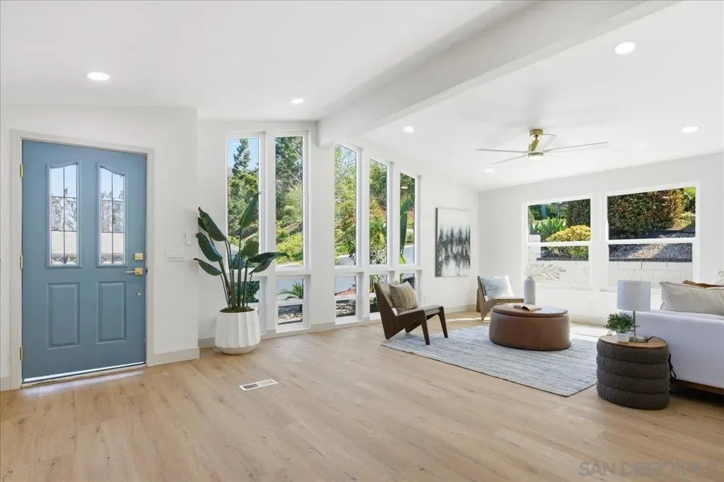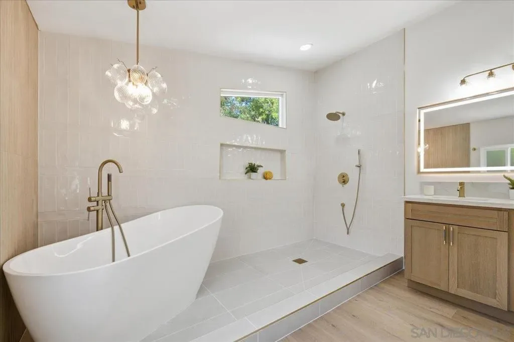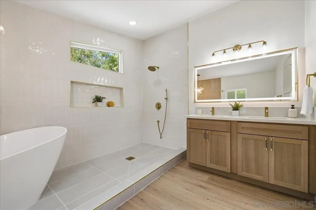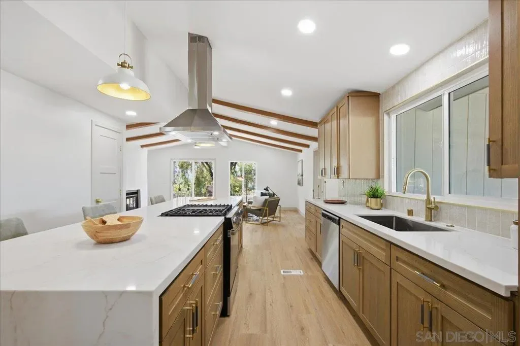 Experience elevated coastal living in this beautifully reimagined home located in a private gated 55+ community in the heart of Carlsbad. This 3-bedroom, 2-bath residence has been fully renovated, blending modern luxury with everyday comfort. Step inside to a light-filled, open layout featuring new luxury vinyl flooring, brand-new windows, and high-end finishes throughout. The kitchen is a showpiece with waterfall-edge quartz countertops, custom cabinetry, and a seamless flow into the main living areas—perfect for entertaining and everyday living. The bathrooms have been thoughtfully redesigned as spa-like retreats with meticulously designed tile showers and elevated custom finishes, while the primary suite stands out with a standalone soaking tub for a true resort-like experience. Enjoy the built in grill in your private backyard with peaceful mountain views, ideal for relaxing or hosting. Residents enjoy resort-style living with access to a pool, spa, gym, tennis court and clubhouse! within a secure, beautifully maintained community. Additional upgrades include a new roof and new HVAC + A/C system. Conveniently located just minutes from Carlsbad’s beaches, shopping, and dining, this home is a perfect blend of comfort, style, and coastal lifestyle.