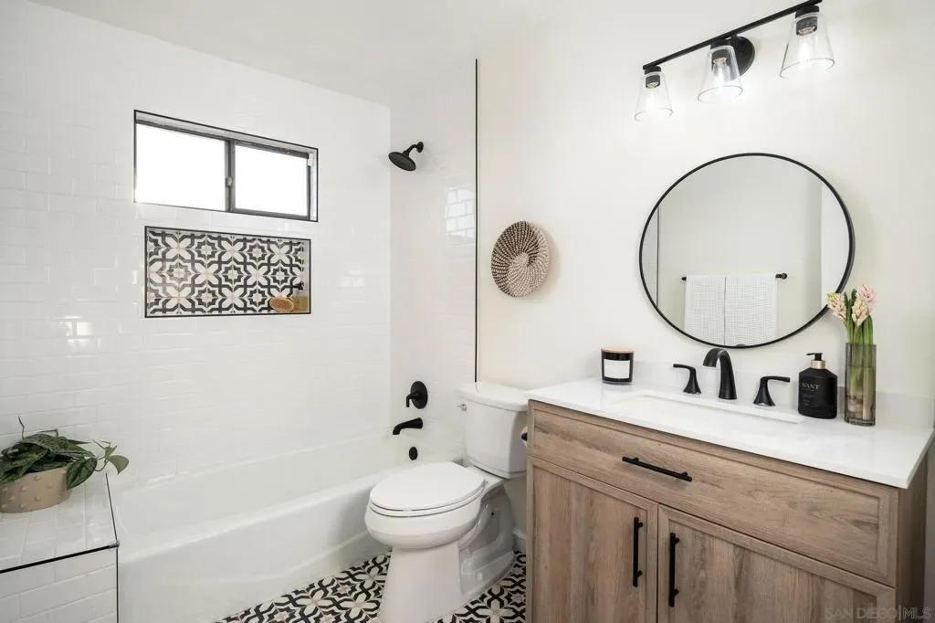 Stunning panoramic ocean and lagoon views highlight this fully remodeled home in a quiet, peaceful La Costa neighborhood of Carlsbad. Soaring high ceilings and a linear fireplace in the main living area, an open floor plan flooded with natural light, expansive grassy front and back yards, large covered back patio, remodeled kitchen and bathrooms, upgraded modern fixtures, and newer plank flooring throughout are some of the many features this home offers. Take in amazing sunsets over the water from the wide upper balcony overlooking your views. Situated walking distance to Carlsbad’s highly rated schools, nearby the shops and dining of The Forum and Bressi Ranch, and just under 15 mins to Carlsbad’s renown beaches, this home is not to be missed!