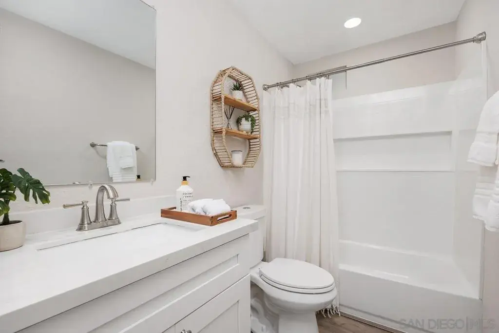 Welcome Home to Lakeshore Gardens, an exclusive 55+ gated community west of I-5 minutes from South Carlsbad State Beach. Live the coastal lifestyle, relax on the front porch & private patio while sipping your morning coffee & enjoying the afternoon ocean breeze. Spacious open floor plan with contemporary kitchen & large quartz-top island creates an inviting entertaining space. Primary bathroom features an elegant dual sink vanity with custom tiled oversized walk-in shower. The covered carport accommodates up to 2 vehicles with a screened-in addition perfect for arts & crafts/workshop or secure storage. Lakeshore Gardens is a premier resort-style community in Carlsbad with exclusive use amenities to include a community room, heated pool, spa, patios with outdoor BBQ, fitness center, library & RV parking. The peaceful park-like setting with greenbelts & walking paths & 10 lakes throughout the community are home to birds & aquatic life. This neighborhood is conveniently located near Carlsbad beaches, shopping, dining & transportation.