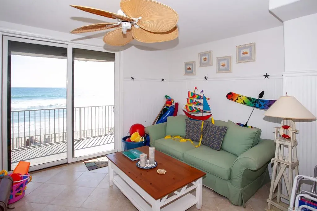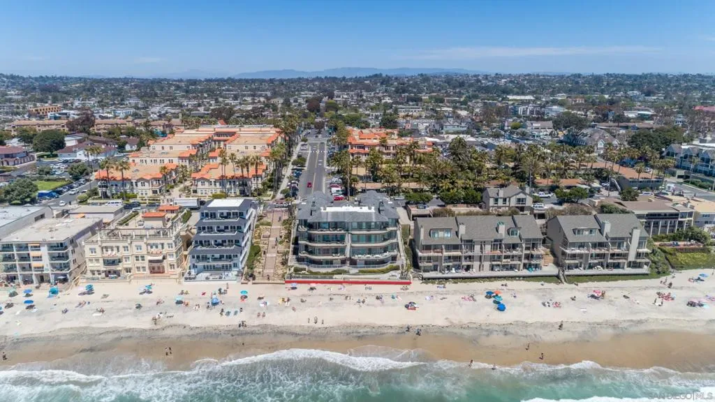 Premier Oceanfront Penthouse! Experience luxury living in this beachfront residence on Ocean Street, set directly on the sand in Carlsbad. Spanning the entire top floor of the south tower, the single-level layout boasts unobstructed white water views that deliver a coastal panorama as far as the eye can see. A private oceanfront balcony extends from both the main living area and the primary suite. Perfectly positioned in the heart of the Village, you’re just moments from charming boutiques, coastal dining, and the laid-back charm that defines this walkable seaside community. A spectacular opportunity to own a prime beachfront property in North County. In addition to the exceptional living spaces of this residence, the property further offers the added value of a separate and spacious beachfront “storage” (approx 200-250sf of addl space) that has been charmingly upgraded into a beach room complete with full ocean views. Located on the beach level and accessible via community elevator or courtyard staircase, this space allows the storage of all your beach essentials while providing direct access to the beach side common areas. Additional Features of Interest: Beachfront balcony (approx 45′) lined with glass wind walls the entire span | Professional interior design | Custom wood beamed vaulted ceilings with complimented paddle fans | Spacious bonus/family room with adjoining Ocean St balcony | Courtyard facing balcony with separate full bath complimenting the north guest suite | Stone gas fireplaces in the living room as well as the primary suite | Gourmet kitchen – Full Ocean View: Granite counters | Viking Professional range and hood Viking microwave | Viking dishwasher | Monogram compactor Sub Zero refrigerator | Wine storage | Stone flooring throughout core living area | Marble master counters | Laundry room – LG appliances | Tankless hot water | Air conditioning | Attached garage plus dedicated parking space within the gated parking structure | Community Features: Approx 110′ Frontage Lot | Substantial concrete storm wall – center staircase with direct gate access to beach | Private gated front courtyard common areas | Guest parking at Ocean St. | Common area elevator | Monitored fire sprinkler system