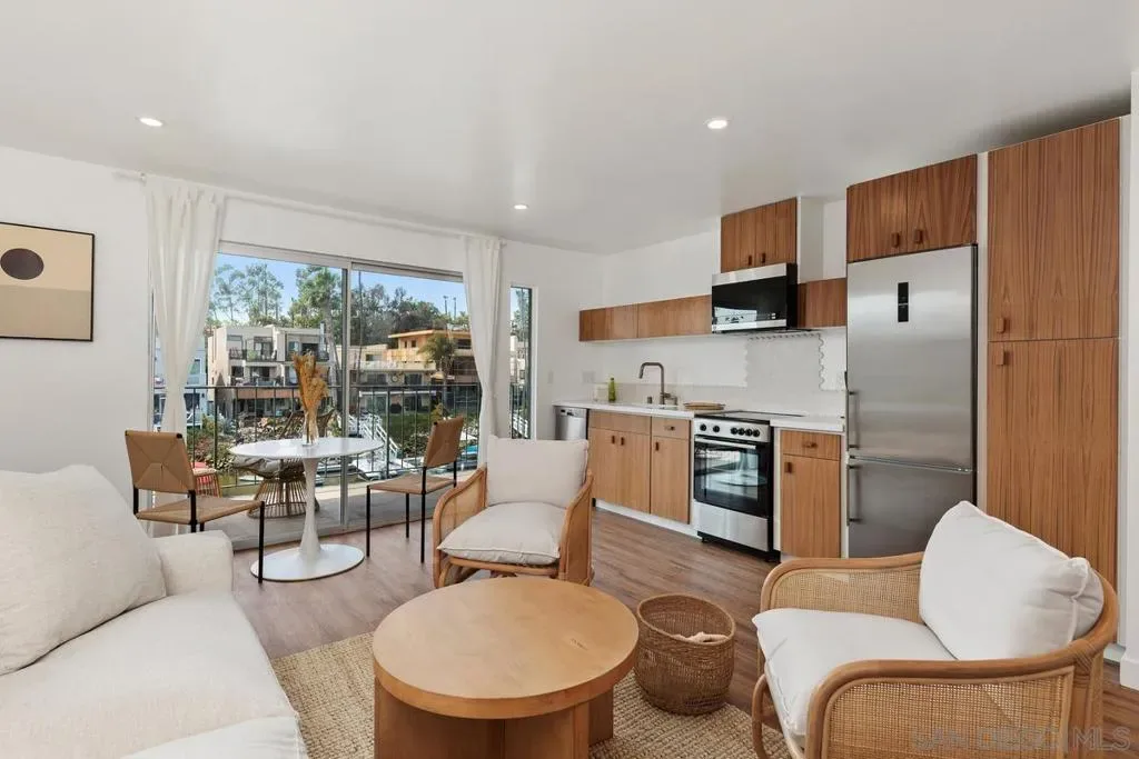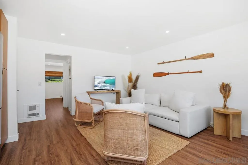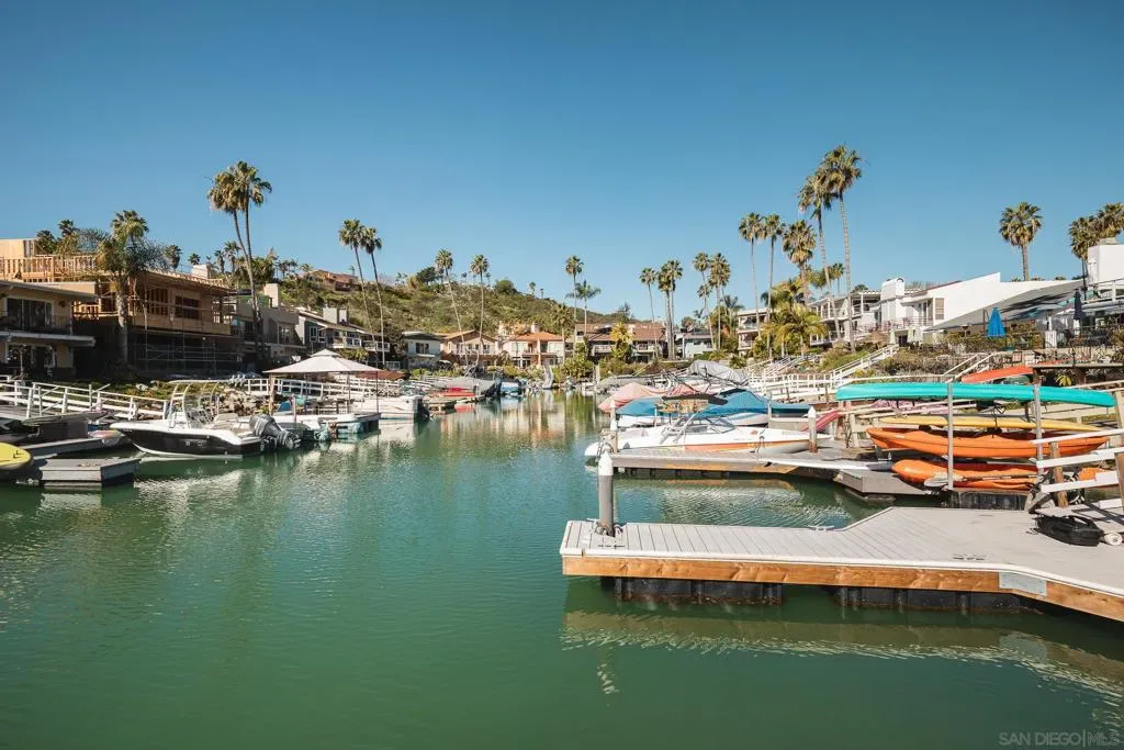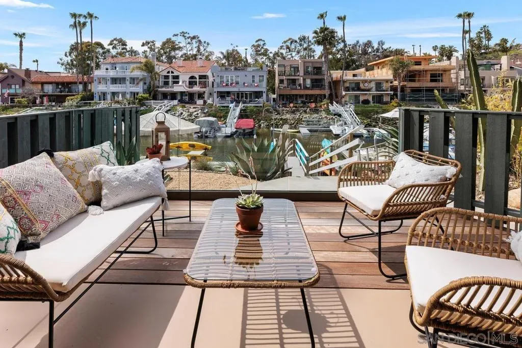 A rare opportunity on the waterfront of the Carlsbad Lagoon – a fully renovated Mid-Century 4-plex with a private boat dock in one of Carlsbad’s most peaceful coastal settings, featuring three 1-bedroom/1-bath residences and one 2-bedroom/1-bath residence, each with private patios and balconies. Each unit captures direct water views and offers private outdoor space, blending seamless indoor-outdoor living just steps from the lagoon beach and minutes to Carlsbad Village. Interiors are thoughtfully updated with custom teak cabinetry, quartz countertops, Italian porcelain tile, high-end appliances, reinforced balconies, and IPE wood decking. Fully furnished and turnkey, the property includes a private gated-entry unit ideal for an owner-user. Zoned for 30+ day rentals with potential to add two units above the garage, this is a distinctive waterfront investment with lifestyle appeal and long-term upside.