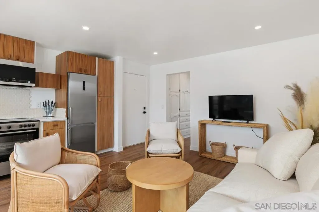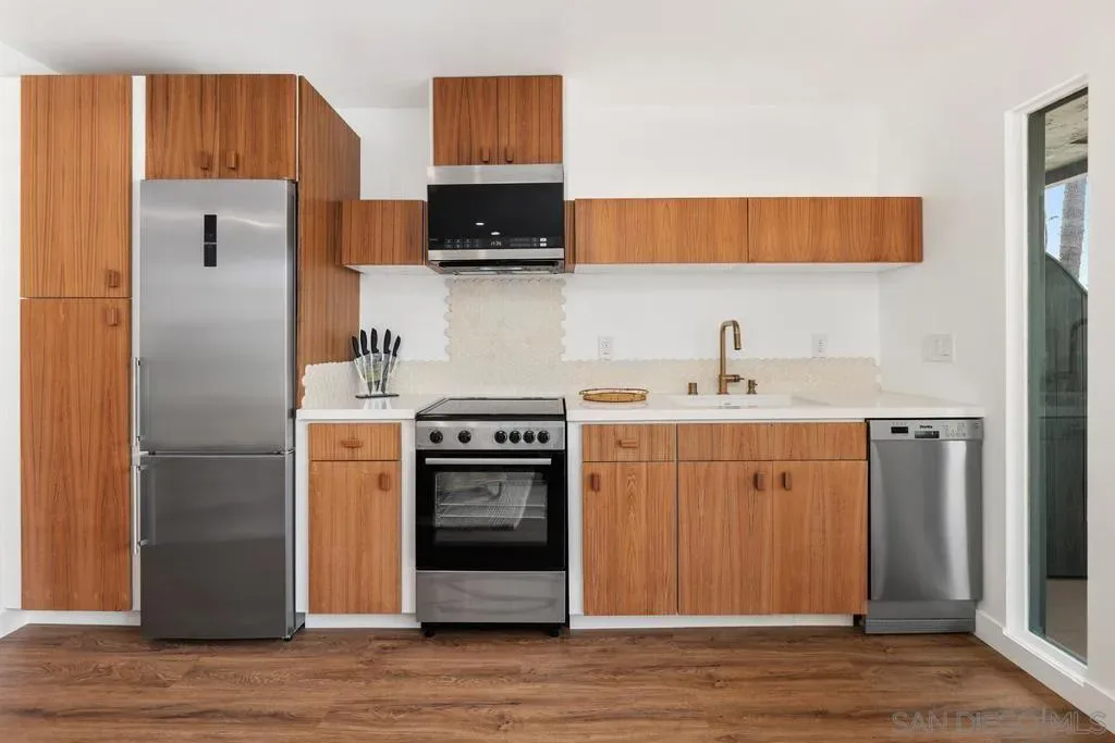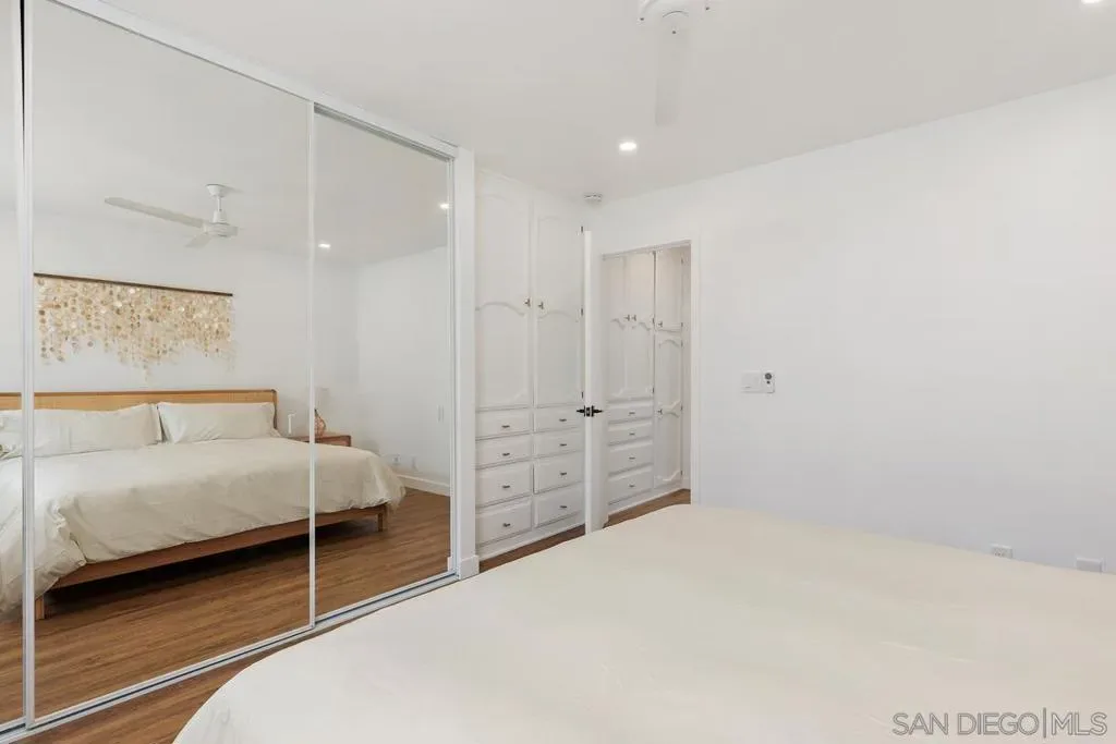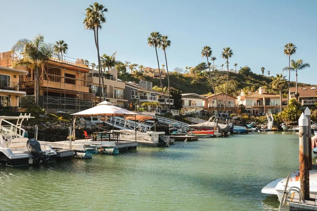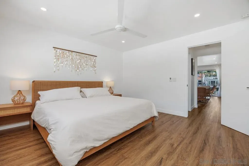 A rare opportunity on the waterfront of the Carlsbad Lagoon – a fully renovated Mid-Century 4-plex with a private boat dock in one of Carlsbad’s most peaceful coastal settings, featuring three 1-bedroom/1-bath residences and one 2-bedroom/1-bath residence, each with private patios and balconies. Each unit captures direct water views and offers private outdoor space, blending seamless indoor-outdoor living just steps from the lagoon beach and minutes to Carlsbad Village. Interiors are thoughtfully updated with custom teak cabinetry, quartz countertops, Italian porcelain tile, high-end appliances, reinforced balconies, and IPE wood decking. Fully furnished and turnkey, the property includes a private gated-entry unit ideal for an owner-user. Zoned for 30+ day rentals with potential to add two units above the garage, this is a distinctive waterfront investment with lifestyle appeal and long-term upside.