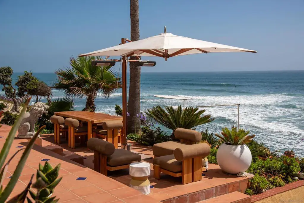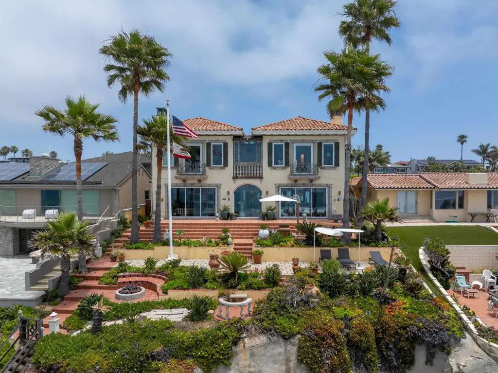 Offered for the first time, the most iconic oceanfront home in all of Carlsbad—an authentic Italian-inspired villa where timeless elegance meets rare beachfront ownership. Nestled within the coveted Terramar community, this extraordinary 6 bedroom estate offers a once-in-a-lifetime opportunity to not only live at the edge of the Pacific but to own the beach itself. Wake up to the sound of waves lapping just beyond your terrace and enjoy sun-drenched mornings with ocean breezes and panoramic coastal views. Designed for luxurious coastal living, the home features dual oceanfront primary suites, including one with a lavish “See to the Sea” oversized shower. A separate 2 story private-entry casita with ocean views adds flexibility for guests, multigenerational living, or income potential. Inside the gated entry, you’re greeted by a lush, romantic courtyard with a bubbling fountain, pond, colorful bougainvillea, and a stunning curved fireplace—setting the tone for the charm and serenity found throughout. Multiple garden vignettes and inviting outdoor seating areas create the feel of a boutique resort, ideal for quiet reflection or entertaining by the sea. Rich wood floors, graceful architecture, and expansive, light-filled living spaces complete the interior, blending old-world character with modern comfort. Voted Home of the Year in 1991 by San Diego Home and Garden, this landmark property isn’t just a residence—it’s a coastal legacy. Live the lifestyle others only dream about—beauty, privacy, and unforgettable oceanfront memories await.