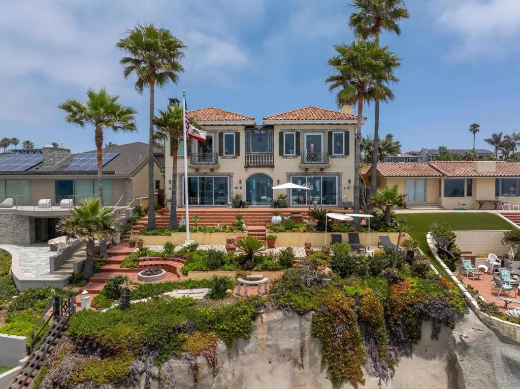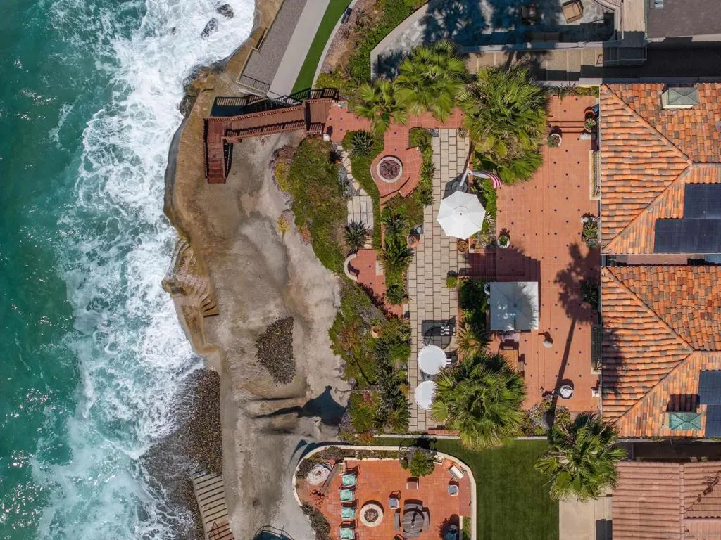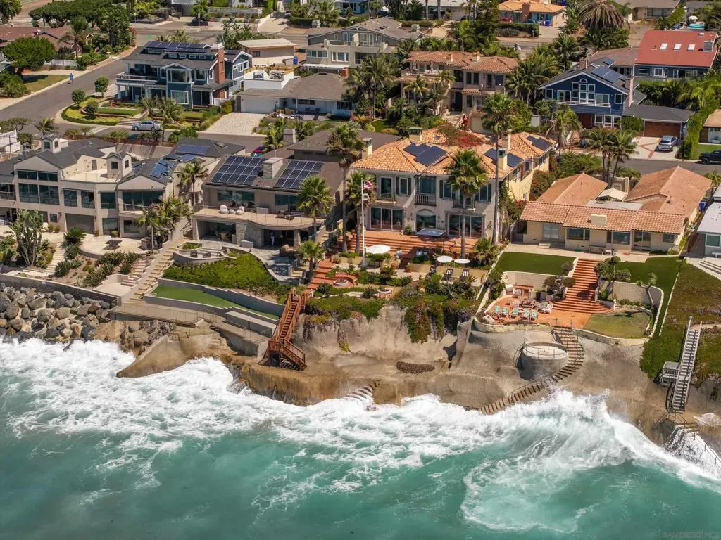 Perched on solid bedrock along one of Southern California’s most exclusive stretches of coastline, 5143 Shore Drive presents a truly irreplaceable offering; rare deeded ownership of your own private beachfront, complete with direct steps leading to the sand below. Ideally positioned at the center of a private-access beach and elevated just enough along the bluff to ensure privacy and protection, this home delivers an extraordinary connection to the Pacific, where the shoreline becomes a seamless extension of your backyard. Here, you can walk directly from your home to the sand, explore tidepools, surf Carlsbad’s renowned surf break, or simply stand at the water’s edge as waves lap at your feet—all within the privacy of a beach you own to the median high tide, one of only a handful of such opportunities in all of California. Known as The Villa at Terramar, this iconic coastal residence blends modern Italian design with timeless coastal elegance, offering a flexible floor plan that effortlessly accommodates intimate living and grand-scale entertaining. Every element of the home is oriented to maximize the sensory experience of the ocean—where sight, sound, and proximity converge to create a daily connection to the Pacific that is rare and deeply compelling. Set within Carlsbad’s sought-after Terramar enclave—a coastal destination known for its charming village, Michelin-star dining, scenic boardwalk, and private airport minutes away—this property offers not only a home, but a lifestyle defined by exclusivity, accessibility, and the enduring romance of true oceanfront living.