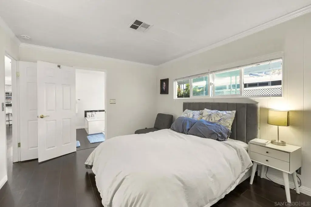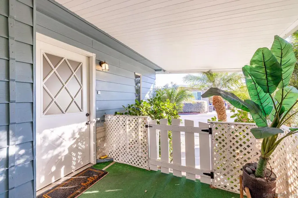 Updated and lovingly maintained 2 bedroom, 2 bath home in the prestigious 55+ community of Lakeshore Gardens! Remodeled kitchen with granite counter tops, tiled backsplash, stainless steel gas range, microwave, dishwasher and refrigerator. Extensive cabinets and bar style seating! Open concept floor plan with multiple skylights bringing in natural light. Hardwood laminate flooring and tiled kitchen and bathrooms. Expanded dual pane living room windows and rare corner gas fireplace! Ceiling fans in living and grand rooms. Open hutch across from dining area for additional storage. Crown molding throughout! Double doors to spacious covered deck. Unique rear and side yard which back up to a forested green belt making it peaceful, private & perfect for relaxing! Lakeshore Gardens is an active 55+, luxury manufactured home community located in Carlsbad! It is located on 54 acres of land, has 384 home sites, & 10 small lakes. Lush landscaping, greenbelts & mature trees throughout, giving the community a park-like feel. The ponds are home to turtles & many fish. Nature lovers have the best of all worlds here! The expansive 2 story clubhouse has a country club feel. The upper-level offers a card room with fireplace, billiard room & a beautiful balcony to enjoy ocean views. Lower level has a fabulous library, recreation room with a stage, commercial grade kitchen & restrooms. A large patio with fountain, fire pit, & outdoor fireplace just outside of the community room. A gated heated pool & spa, beautiful gym, ping pong table, RV parking & more. The entire park is enclosed with a 6 ft wall and security gates. So many activities in the community, almost daily, so residents can find friendship & companionship while attending events they enjoy. Activities include card games, bingo, monthly breakfasts, weekly potlucks, craft groups, golf groups, ladies’ luncheons & much more! You can be as active as you choose, right here at Lakeshore Gardens!