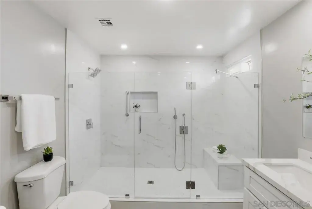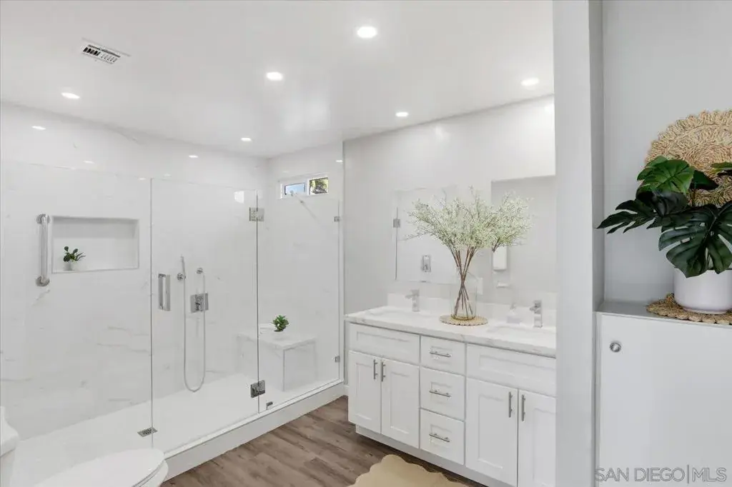 This Modern Coastal Home blends contemporary comforts and aesthetics with a coastal, relaxed atmosphere. Soothing gray colors, large open spaces, solid surface flooring throughout. Well-appointed kitchen, with ample work space and an expansive island, has newer appliances w/5 burner gas stove. Primary bath is thoughtfully modernized w/double vanity & a wall to wall shower! 24’X8′ deck perfect for entertaining and spacious, pet friendly, fully fenced lower yard w/artificial turf. **No Property Taxes** Some photos have been Virtually Staged. Location is a 10 minute walk to South Carlsbad State Beach! LARGE strip mall offers EVERY POSSIBLE amenity from shopping to services all just a walk across the street! Lakeshore Gardens has a multitude of community areas that are upscale, assessible and beautiful!