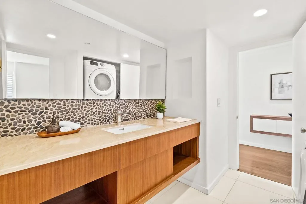 Experience elevated La Costa living in this completely renovated single-level residence, where natural light fills the spacious living and dining areas. Your a private balcony overlooks the Omni golf course, perfect for enjoying the beautiful landscape it provides. The updated kitchen offers brand new appliances, new countertops and cabinetry, with a dedicated laundry room nearby. Ample storage is found throughout, along with additional private storage in the garage. The home includes two assigned parking spaces in a secure gated garage. Residents enjoy resort-style amenities, including a pool, spa, and a stunning rooftop deck with sweeping views of the Omni La Costa Resort golf course. A nearby path provides direct access to the course, along with a popular snack shack and bar. Ideally located just minutes from Carlsbad’s beaches, I-5, and Beacon La Costa shopping and dining, this home offers the perfect blend of lifestyle and convenience.
