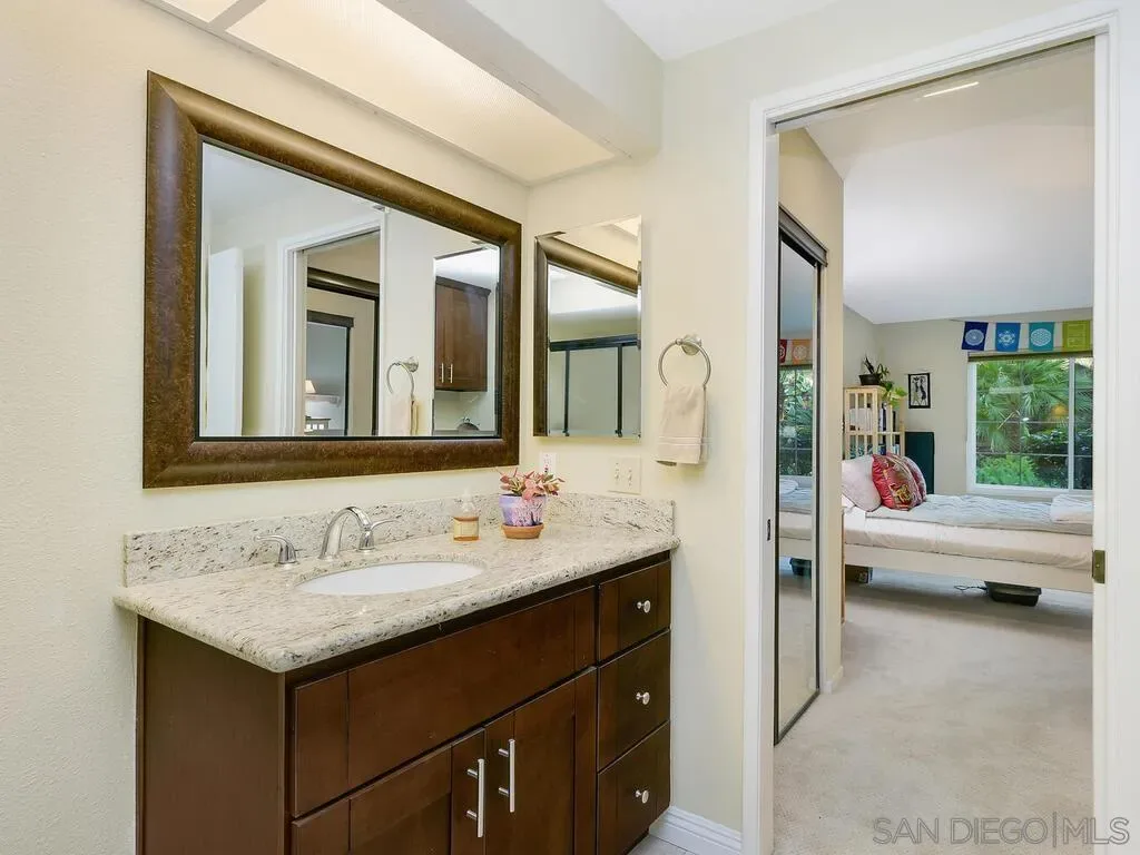 Price adjustment! Move-in ready, beautifully remodeled 2-bedroom, 2-bath ground-floor corner end unit in the desirable Sea Point Tennis Club community. This private location offers privacy and easy access with 1,409 sq ft of light filled living space. Features include a cozy gas fireplace and dry bar in the living room, updated flooring and most windows and 2 sliding doors are retrofitted, plus a privacy security screen door. The sunny kitchen is equipped with stainless steel appliances (refrigerator is 2 years old), and the primary bathroom shower has been tastefully updated. Water heater is newer. Convenient inside laundry closet. The 3 outdoor storage rooms attached to the condo are a bonus! Parking includes a one-car garage with extra storage, plus an additional assigned parking space. Community amenities include tennis courts, pools, and spas. Located in the highly regarded school district, shopping, dining, beaches, and coastal living. Do not miss this one. You will love Sea Point Tennis Club! Welcome to Sea Point Tennis Club, a tennis-oriented residential community located in the La Costa area of Carlsbad, California (92009) It combines resort-style living with active outdoor amenities and is known for its community tennis courts and associated lifestyle offerings. In addition to tennis, the complex includes other leisure amenities enjoyed by the residents such as walking paths, swimming pools and spas. The setting is in a quiet, landscaped neighborhood just minutes from shopping, dining, beaches, high rated schools, and entertainment in Carlsbad! Discover Sea Point Tennis Club!
