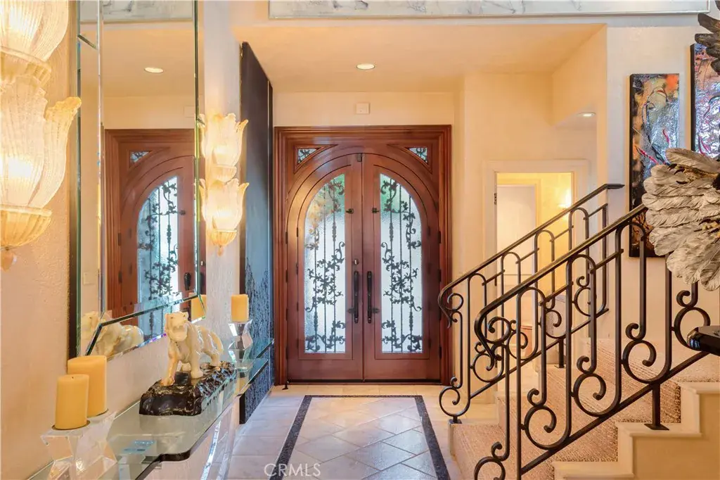 Discover the Tudor style elegance of Barrington Place, a prestigious 21 home gated community styled after post renaissance English architecture where luxury meets comfort meets convenience; Where the residences are adorned by a breathtaking cobblestone inspired central drive encapsulated by lush vegetation and meticulously manicured Ficus trees. More than just a home, this is a rare opportunity to own a residence in a truly unique and coveted community that does not come around often. The refined stone veneer of the exterior is only outshone by the extravagant eight foot Mahogany double door entry that features vented inserts and decorative wrought iron grilles. Step inside and be greeted by a centerpiece elliptical curved staircase featuring ornamental brass railings along with a 20 foot ceiling, chandelier and tile flooring w/ granite inlays. The spacious family room is perfect for hosting family and friends while also offering the comfort and relaxation of a private evening in front of the fireplace; Or enjoy the beautiful southern California weather and sunsets from your custom paver stoned rear patio that offers the privacy of having no rear neighbor and overlooks the beautifully manicured green belt. The redesigned kitchen offers both quality and functionality w/ stainless steel appliances, an induction cooktop w/ hideaway hood, a panel matched built-in sub zero fridge, granite countertops, soft close custom cabinets/drawers and bar top seating for four. Upstairs, a primary suite offers a relaxing sitting area situated around a private fireplace which also includes a wet bar and balcony that offers peekaboo views of the mountains, city lights and green belt. The master bathroom includes radiant heated flooring, a walk in steam shower and a vintage styled jetted clawfoot tub and corresponding views. Additionally there are two guest bedrooms upstairs that connect via a Jack-and-Jill bath w/ granite counter tops and a walk in shower. This residence also includes plantation shutters, Pella windows, recessed lighting, epoxied garage floor, tankless water heater, 220v in the garage, built-in alarm system along with a beautiful community picnic area, pool and spa. All of this while offering a one of a kind living experience that is located adjacent to the renowned Omni La Costa resort, Spa and Golf club and mere minutes from Carlsbad State Beach, entertainment, and all the other amenities and lifestyle opportunities that Carlsbad offers.