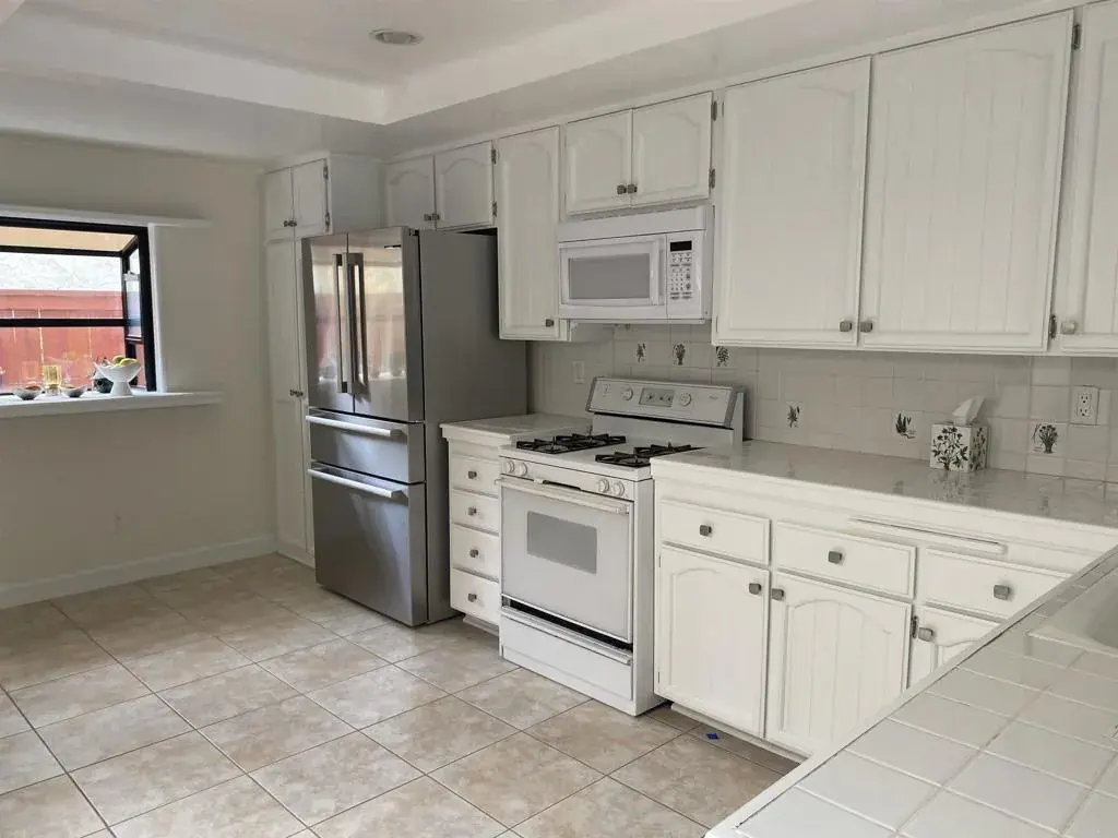 Lovely single story home in Parklike setting! Vaulted ceiling, laminate flooring, ceiling fans, fireplace. Stainless steel appliances, gas range, dishwasher. Washer and dryer conveniently in attached 2 car garage. Update bathrooms. Huge, fenced yard with lawn area, fruit trees, garden boxes., patios. Close to LCCHS, La Costa Heights Elementary school, restaurants, shopping, beaches, golf, parks and more! Pets considered. Available Feb 25.