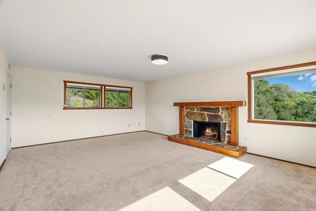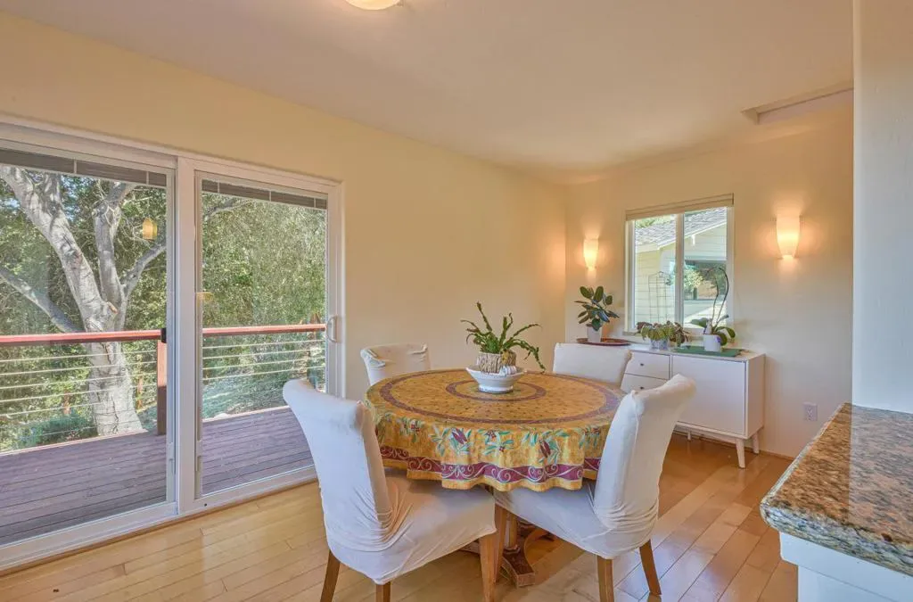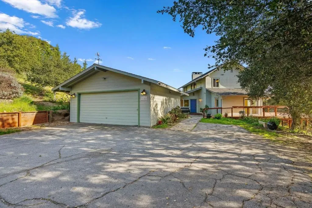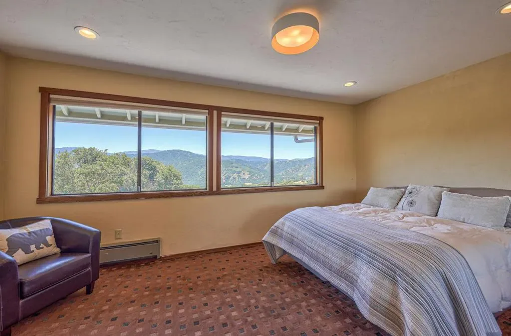 Set at approximately 1,100 feet in elevation at the end of a 450-foot private driveway, this 2.35-acre Carmel Valley retreat is surrounded by magnificent 250-year-old oak trees, offering exceptional privacy, quiet, & sweeping Santa Lucia Mountain views toward Big Sur. The two-story barn-inspired country home is designed for indoor-outdoor living. Expansive 3,000+ SF redwood decking surrounds the home & frames a striking black-bottom pool, creating an exceptional setting for entertaining & sunset gatherings beneath the oaks. A bright sunroom captures panoramic mountain vistas, while the living room features a dramatic slate fireplace & opens to the dining area. The remodeled primary suite on the main level includes radiant heated floors. New washer & dryer. New dishwasher & stove. Upstairs, two bedrooms enjoy Santa Lucia views, including a larger bedroom with its own fireplace. Recent improvements include a new 40-year roof, new main-level flooring, & new upstairs carpet. The property is all-electric & includes a 20′ x 23′ garage with a 50-amp EV-ready sub-panel plus a detached 280 SF workshop/studio with its own 50-amp sub-panel. Located in the Carmel Unified School District, this peaceful property offers privacy, views, & space to gather just minutes from Carmel Valley Village.