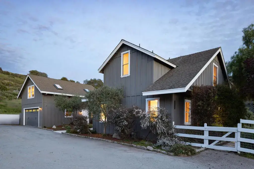 Nestled on a beautifully landscaped acre in the heart of sunny Mid Carmel Valley, this remodeled 3,500 sq. ft. modern farmhouse combines style, luxury, and functionality. Featuring 4 bedrooms, 2.5 baths, and an open, flowing floor plan, this home offers abundant space for both everyday living and entertaining. The home features abundant natural light due to its southern exposure, as well as beautiful mountain views and gorgeous sunsets in the evening. The main level welcomes you with a formal entry, gourmet kitchen, a spacious family room, two bedrooms and more. The grand great room is a showstopper, with hardwood floors, plantation shutters, vaulted and beamed ceilings, and a stunning river rock fireplace. Upstairs, the private primary suite offers a serene retreat, complete with a spa-like bathroom and walk-in closets. The 630 SQ FT 4th bedroom is perfect for multiple uses and has a private deck to take in the breathtaking valley views. Designed for seamless indoor-outdoor living, the property boasts lovely patios, a lush turf lawn, beautiful gardens, a raised vegetable garden, and even a hobby vineyard. With sweeping valley vistas and ample space for entertaining, this home truly offers the perfect Carmel Valley lifestyle!