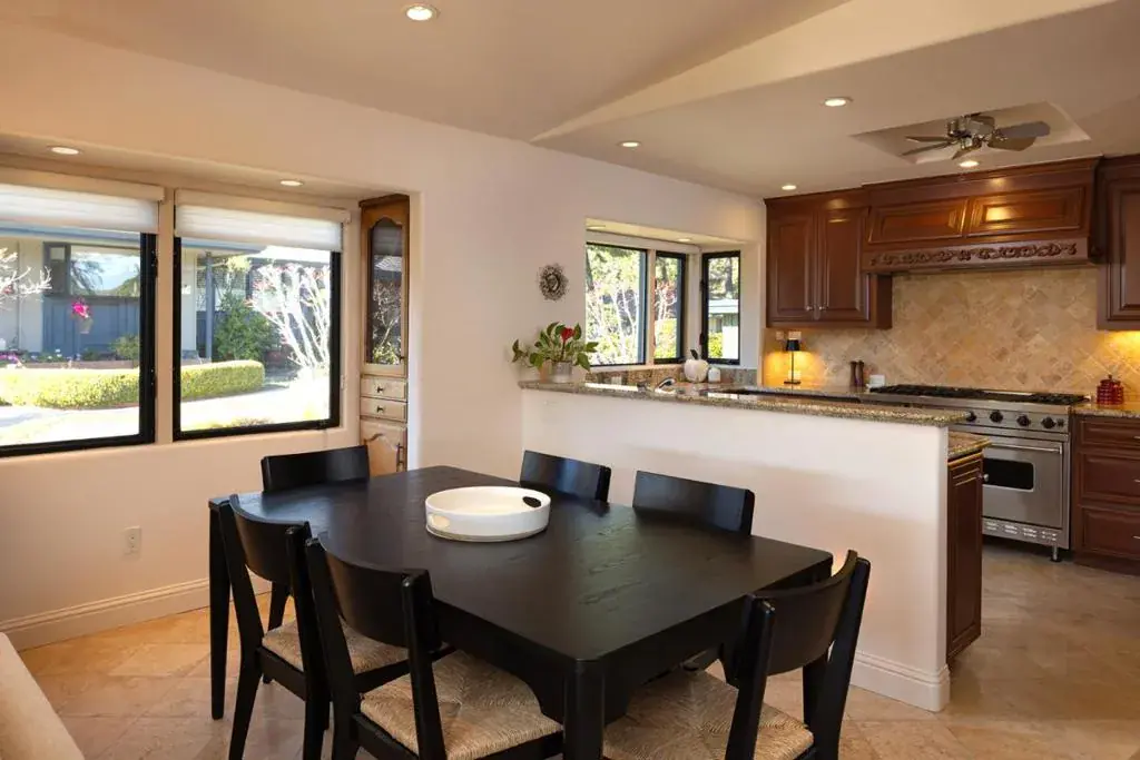 Nestled in a tranquil setting within one of California’s most sought-after 55+ communities, this beautifully upgraded 1,667 SqFt residence sits just steps from the clubhouse and premier amenities. Thoughtfully remodeled in 2005, the home features beautiful mountain views and high-quality finishes, including thin-wall plaster, travertine flooring, radiant heat, Milgard windows, and a custom marble and granite fireplace. The kitchen features granite counters, tumble marble backsplash, premium appliances including a Viking range with two ovens, a double sink, and cherry cabinetry with rollout drawers. The living area includes Bose surround sound and a custom TV niche framed with antique French walnut doors, and opens onto a deck with mountain views. The expanded primary suite offers a walk-in closet, cherry vanity, and a travertine shower with overhead and handheld sprays, a corner seat, and a heated towel bar. The guest room doubles as an office with walnut cabinetry and a queen Murphy bed. Additional features include skylights, Hunter Douglas Silhouette shades, extensive custom cabinetry, attic storage, and a one-car carport. Del Mesa residents enjoy a clubhouse, restaurant, indoor pool, active community programs, and HOA dues conveniently cover most individual utilities.