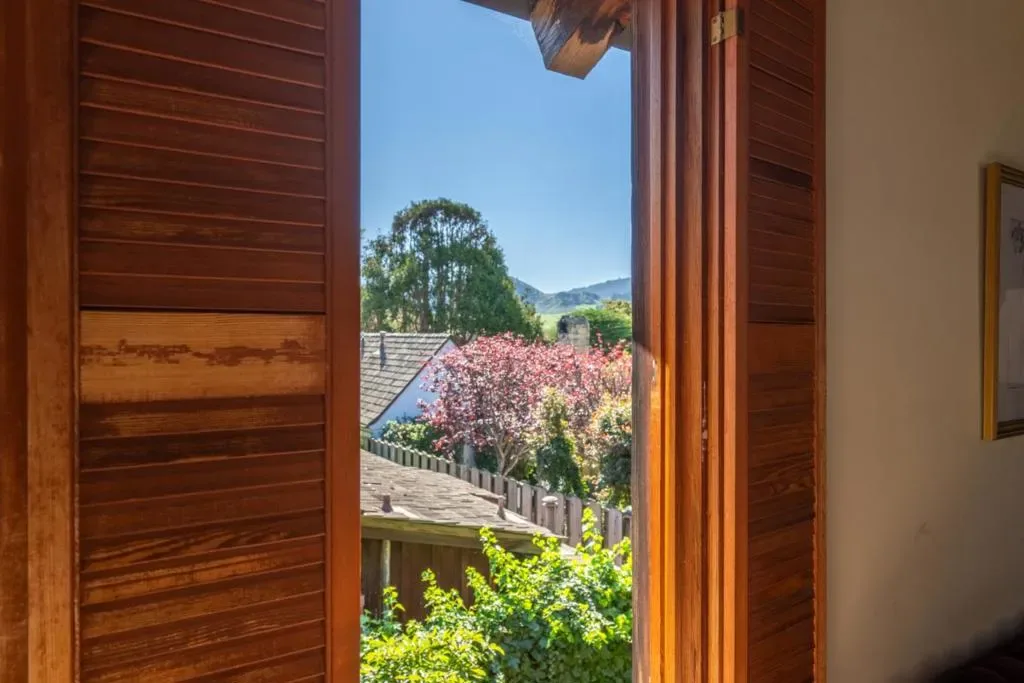 Perfect Carmel Point location meets rustic Big Sur charm. This property embraces the quiet enchanting side of the California coastal lifestyle with easy access in two mere blocks to pristine Carmel beaches. Tucked behind a cypress canopy discover the private hideaway, a dramatic redwood architectural piece resting in its natural habitat. Enter to soaring, open-beam ceilings, expansive windows displaying garden views and thoughtfully placed skylights filling the home with natural light while warm wood details remain a theme throughout. A fireplace with rustic wood mantel centers the large living room that opens to dining area and kitchen. Down the hall is a bedroom, and a full bath featuring sunken tub under skylight. Two primary bedrooms with ensuite baths on different levels, one offering garden and distant hill views with a deck, the other featuring French doors to the backyard patio. Through a separate entrance sit a bonus room, full bath, and large hobby room with a wall of geometric windows. A distinctive nod to Carmel’s Bohemian roots.