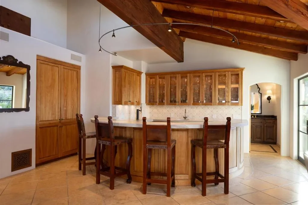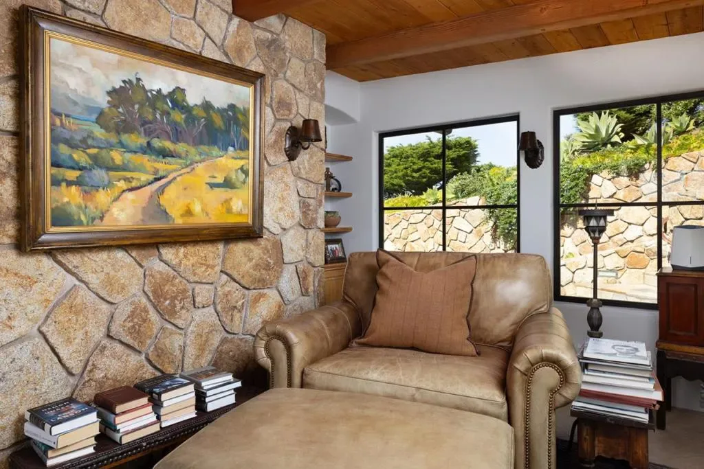 Set between the dramatic Carmel coastline and the Santa Lucia Mountains lies a private retreat in perfect balance with land and sea. Stone steps lead to this five-bedroom, six-bathroom contemporary coastal chalet, where a tiled foyer and vaulted, beamed ceilings create an immediate sense of grandeur. At its heart, a living room with a stone fireplace and soaring ceilings is bathed in light from expansive windows and skylights, offering stunning views from Yankee Point to Big Sur. The chef’s kitchen features custom cabinetry, a spacious island, and a breakfast bar, flowing seamlessly into the dining room, bar, and outdoor BBQ space. The primary suite is a luxurious retreat with ocean views, a wood-burning fireplace, terrace access, and a spa-like bath with a walk-in closet. Four additional bedrooms offer comfort for family and guests. Outside, enjoy a pool, hot tub, pizza oven, grill, and firepit terrace surrounded by beautifully landscaped grounds. Additional highlights include a home theater, sauna, wine cellar, dual offices, and a private guest suite with its own entrance and full amenities. This rare estate in Victorine Ranch offers timeless beauty, privacy, and a legacy of luxury just minutes from downtown Carmel.